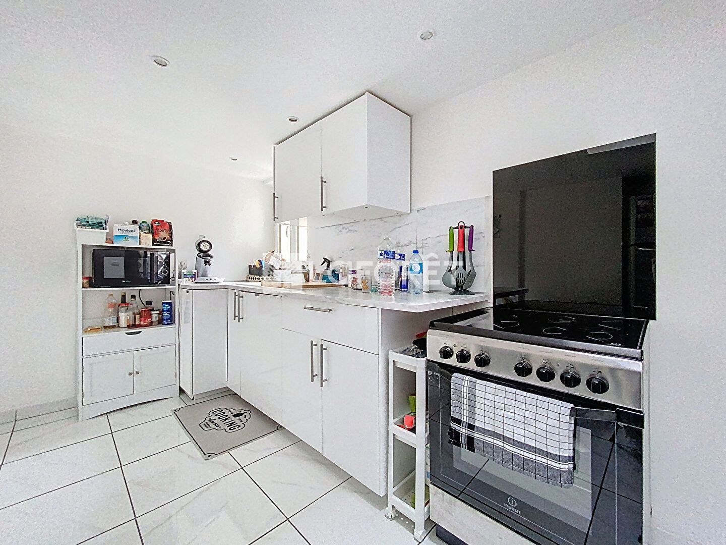 -Un premier étage avec un palier, un cabinet de toilette, un séjour, une cuisine, et une chambre