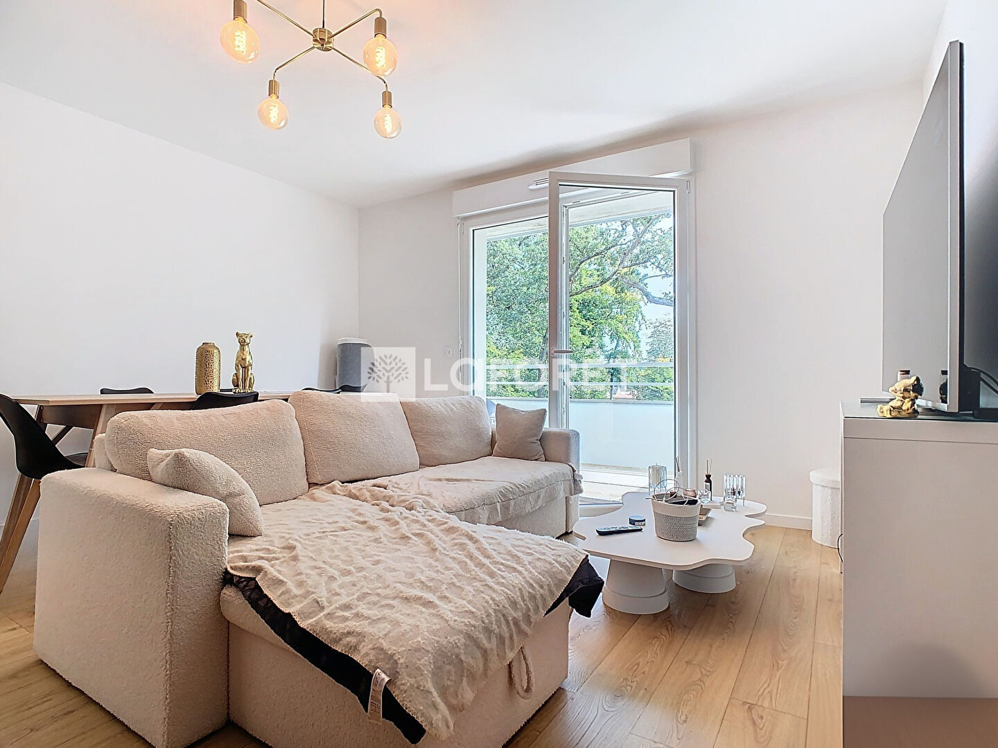 Le séjour donne sur un balcon.