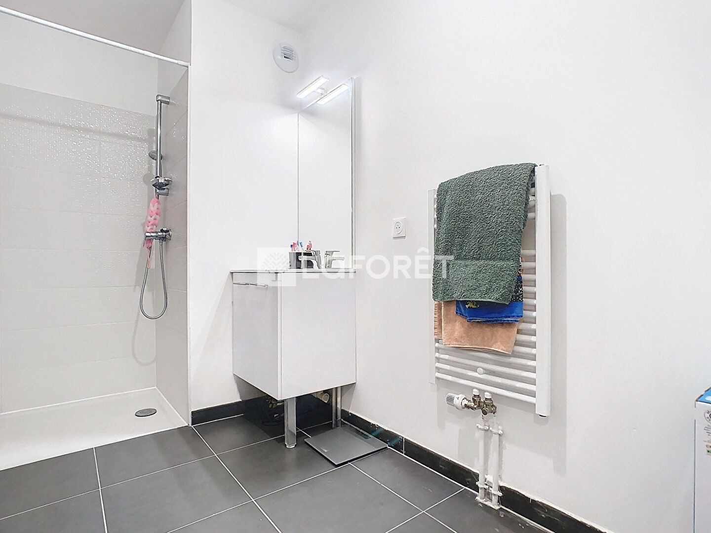 L'appartement bénéficie de radiateurs alimentés au gaz et de deux places de stationnement en extérieur.