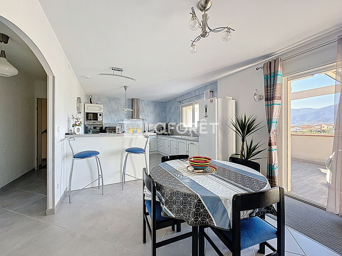La pièce de vie avec cuisine ouverte se situe au 1er étage, bénéficiant ainsi d'une luminosité optimale . L'accès terrasse offre un espace détente, barbecue...avec une vue à couper le souffle sur les montagnes. Une chambre ,une salle d'eau et un cellier viennent compléter l'étage.