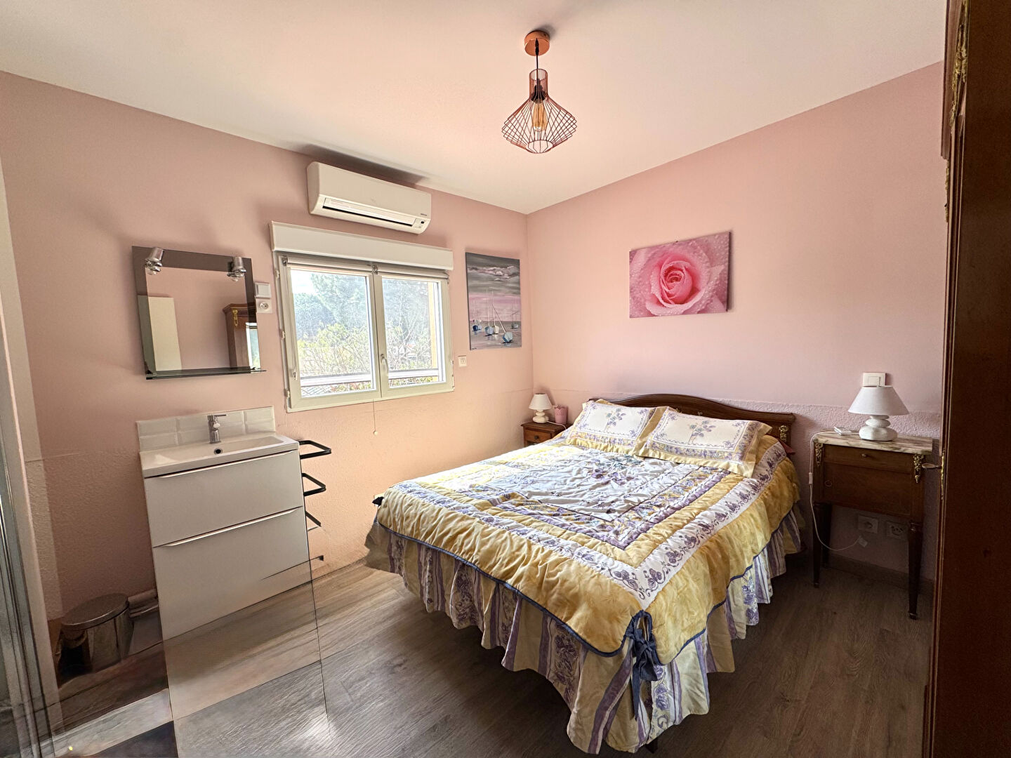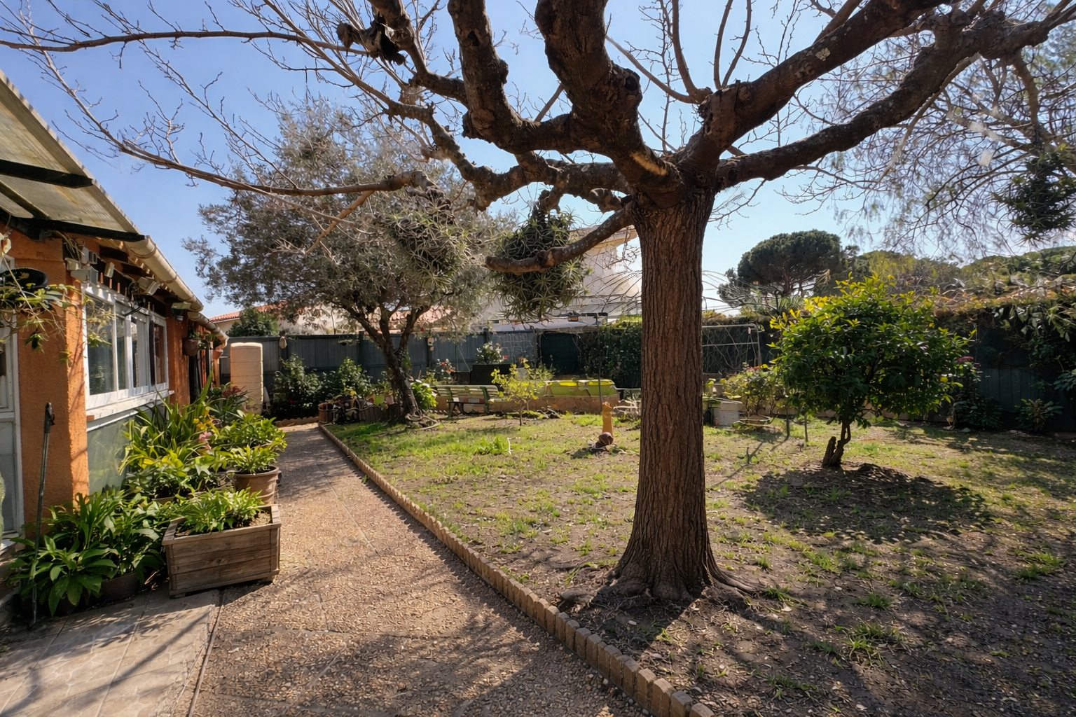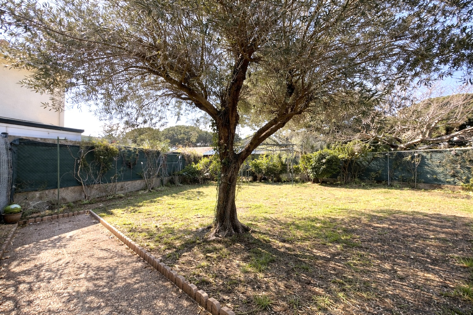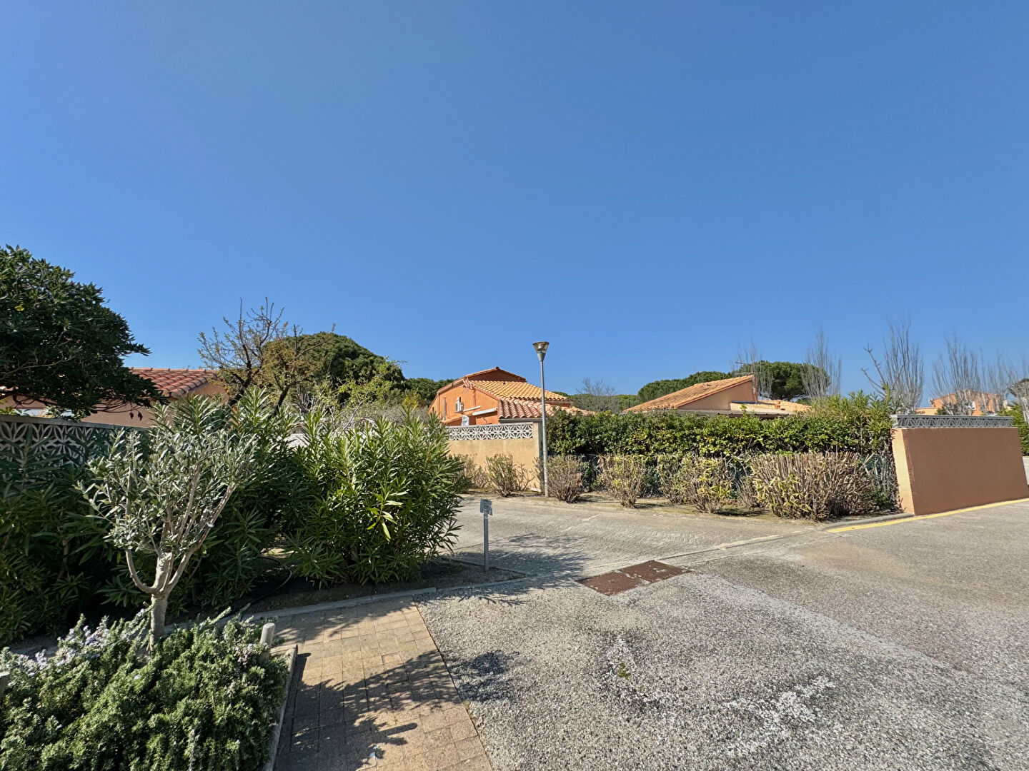 A vendre, résidence les Aigues Marines à Saint-Cyprien Plage : maison en R+1 avec au rez-de-chaussée, une cuisine ouverte équipée, un séjour , une chambre ,une salle d'eau et un WC . Dans le prolongement du salon, une véranda de 14m2 . L'ensemble donne sur un beau jardin clos d'environ 300m2 avec ses plantes, arbustes...et sa pergola dotée d'une cuisine d'été.