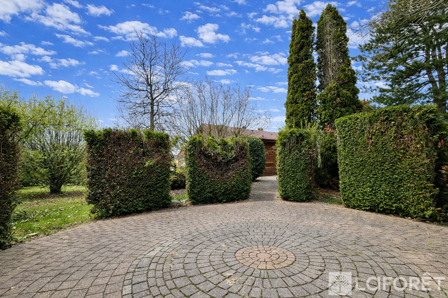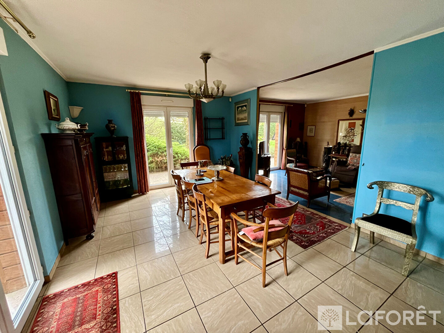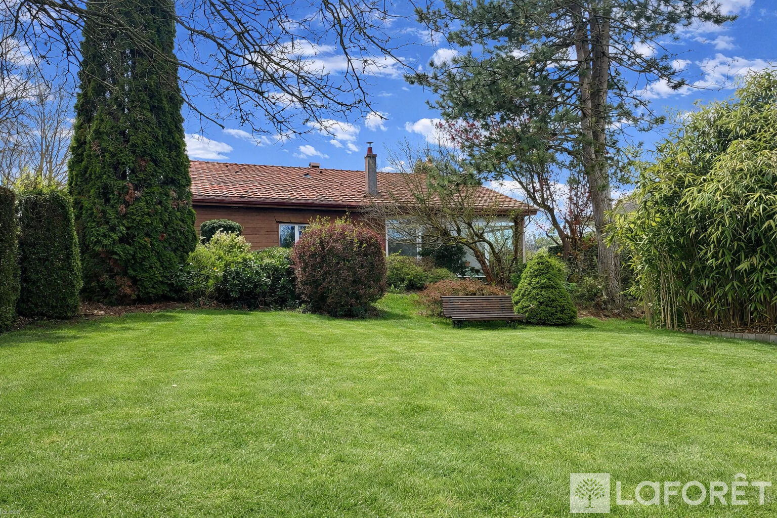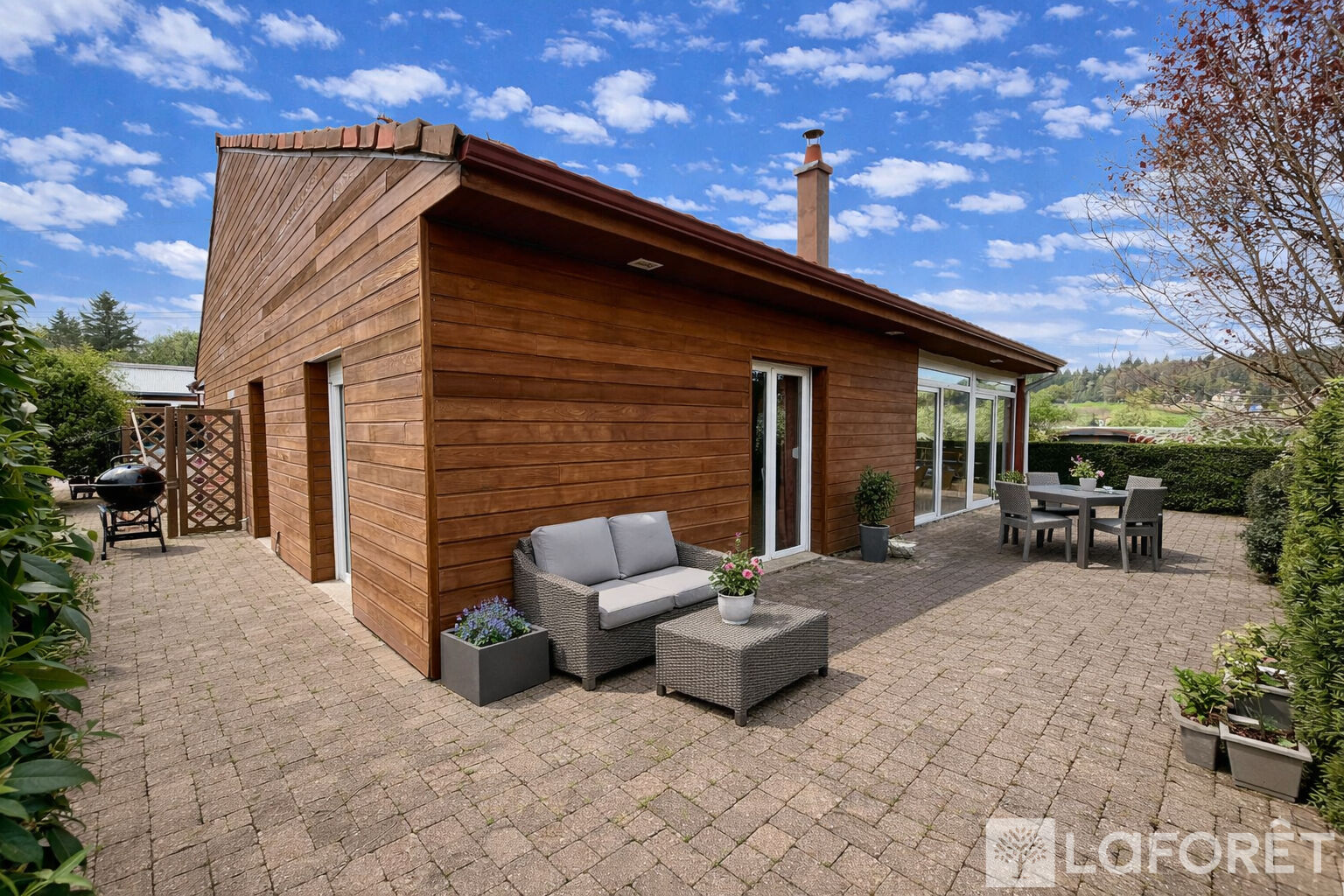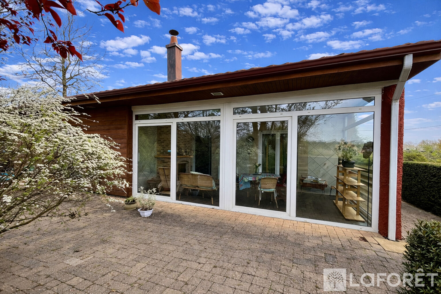 Dounoux. Maison intégralement de plain-pied comprenant véranda, dégagement, 4 chambres, salle de bains, cellier, cuisine, salon/séjour, patio, dépendances, garages, terrasse et terrain attenant de 2500m².