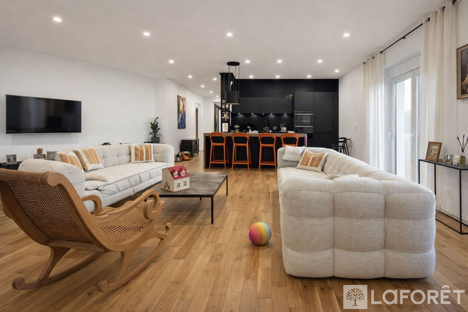 Il dispose d'une cuisine ouverte sur séjour lumineux, trois chambres, dressing, cellier, une salle de bains moderne et des rangements.