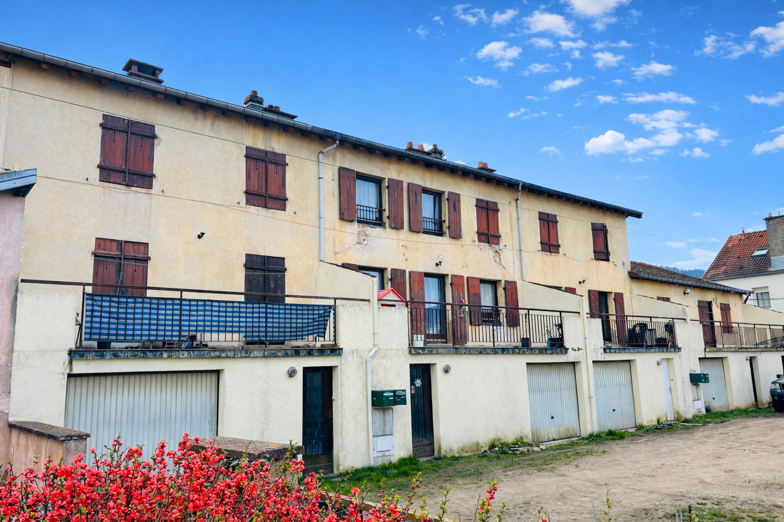 4 appartements F3 d'environ 50m2 avec : entrée individuelle, terrasse, garage.