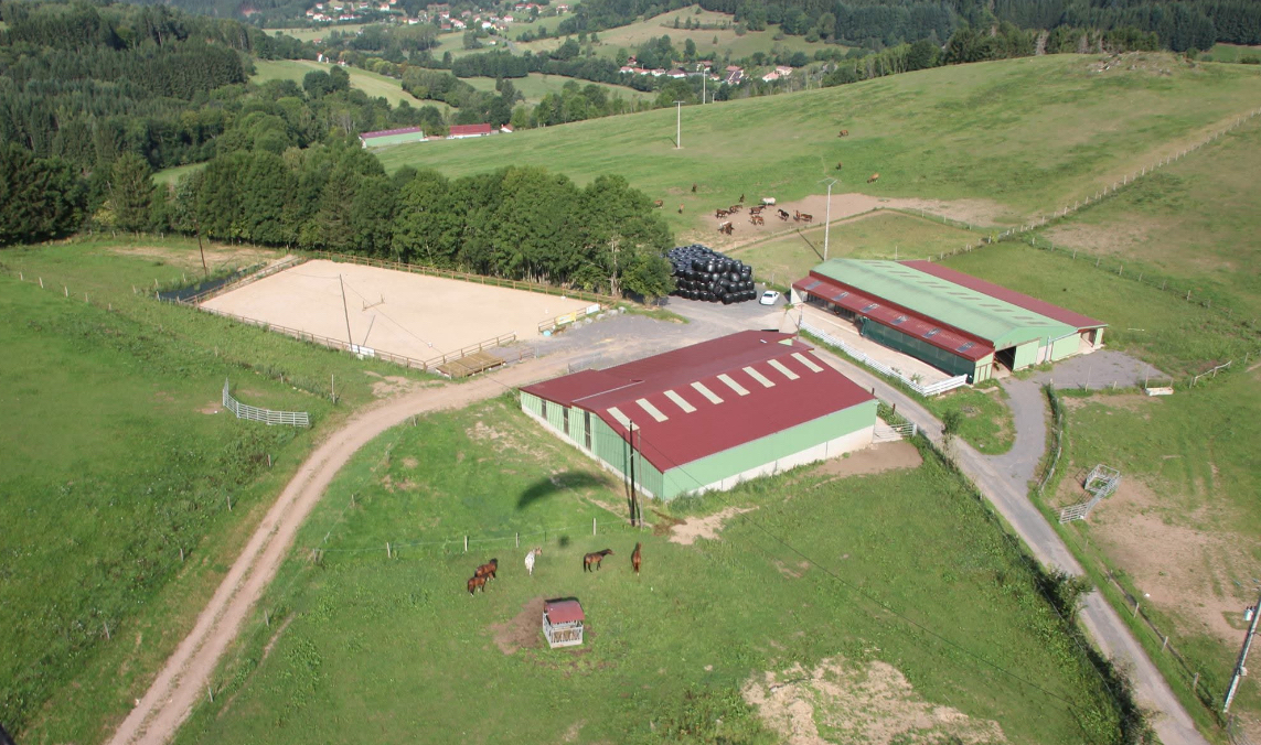Écuries, hangars et zones de stockage complètent ce domaine conçu pour le confort des chevaux et la facilité de gestion quotidienne.