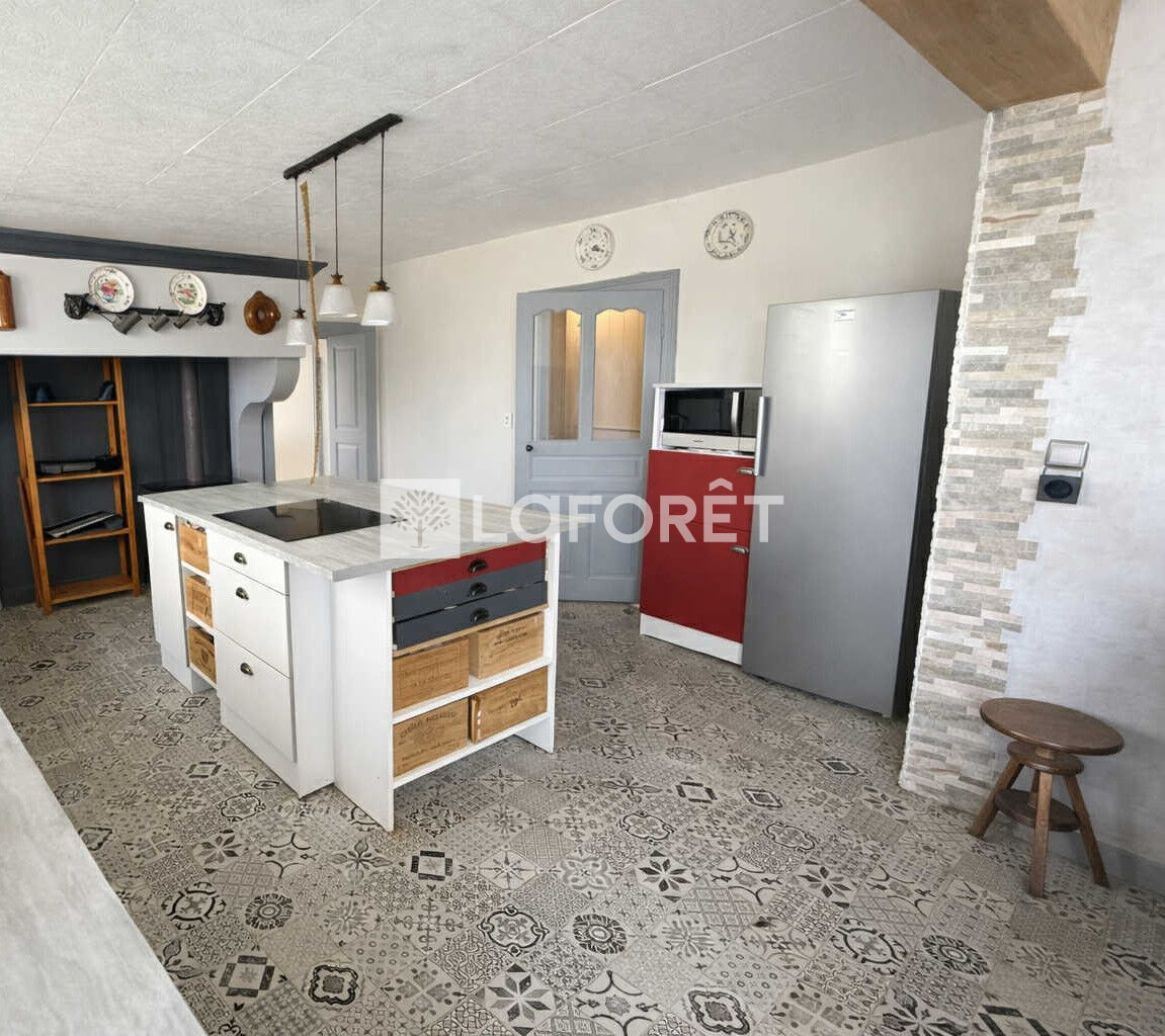 Cuisine aménagée avec électroménager, espaces de vie lumineux.