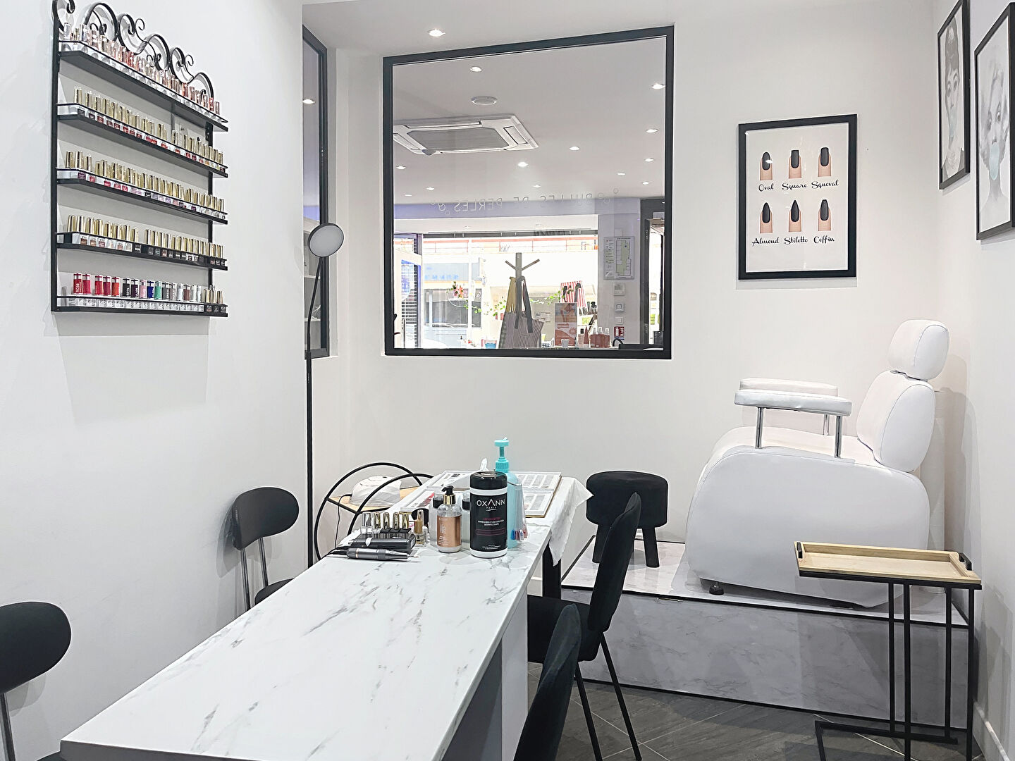 - un espace onglerie avec 2 postes de manucure et un poste pour les pieds