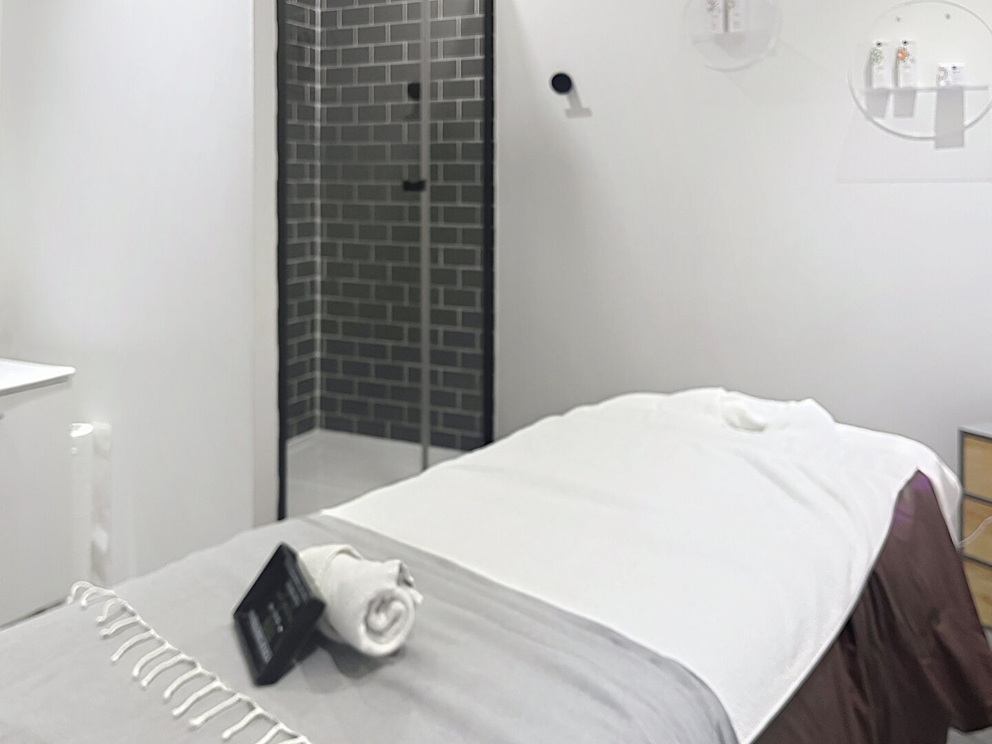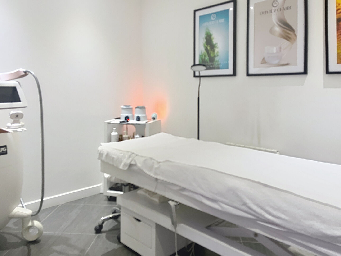 - deux grandes cabines d'esthétique, une avec une douche, et l'autre avec un appareil LPG Endermologie Alliance, dont 2 lits d'esthétique et 2 tablettes à roulettes avec 2 chauffes cire