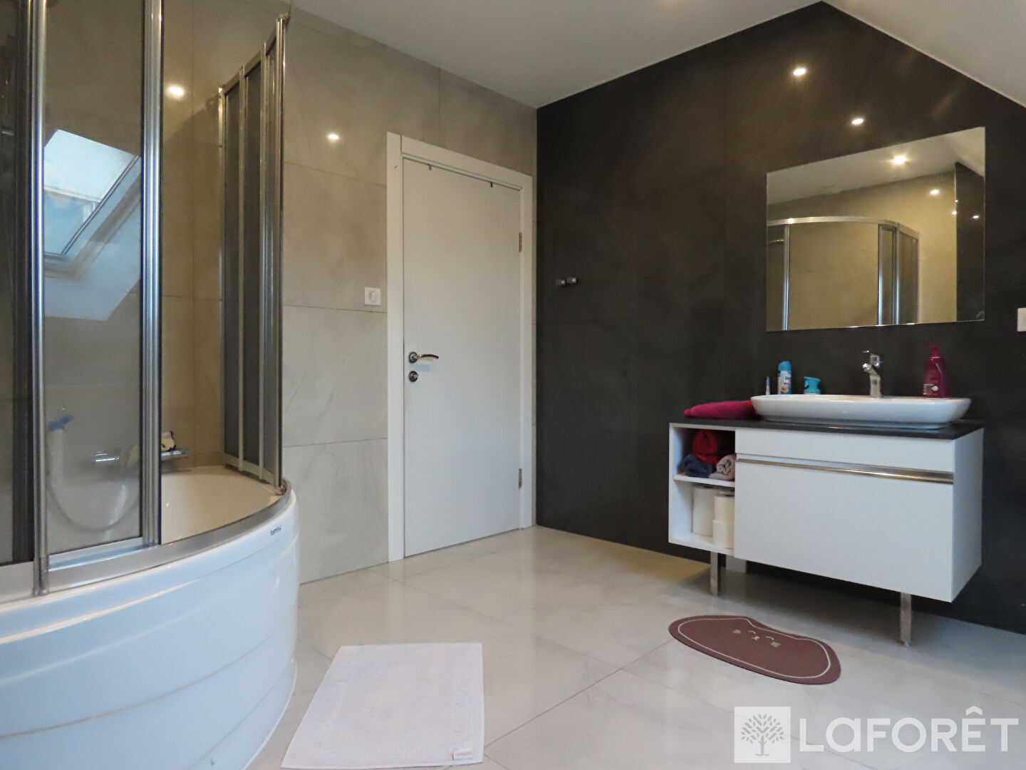 - A l'étage: Vous pourrez profiter de 3 chambres, dont une suite parentale avec sa salle d'eau privative, sans oublier la salle de bains avec WC accessible aussi bien aux parents qu'aux enfants. L'étage vous offre également un bel espace de vie avec sa grande baie vitrée exposée plein Sud (cet espace pourrait également être reconverti en 4ème chambre).