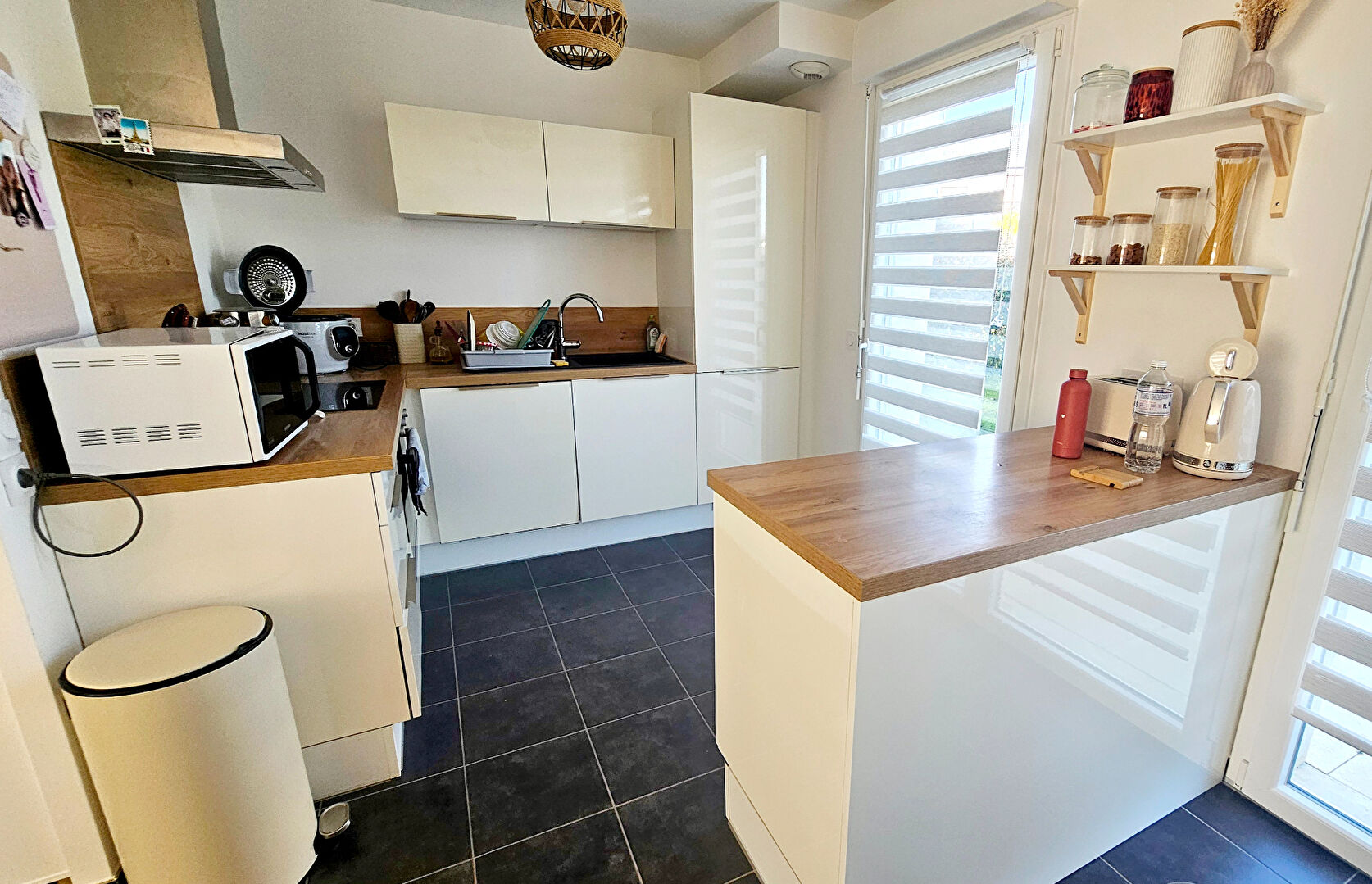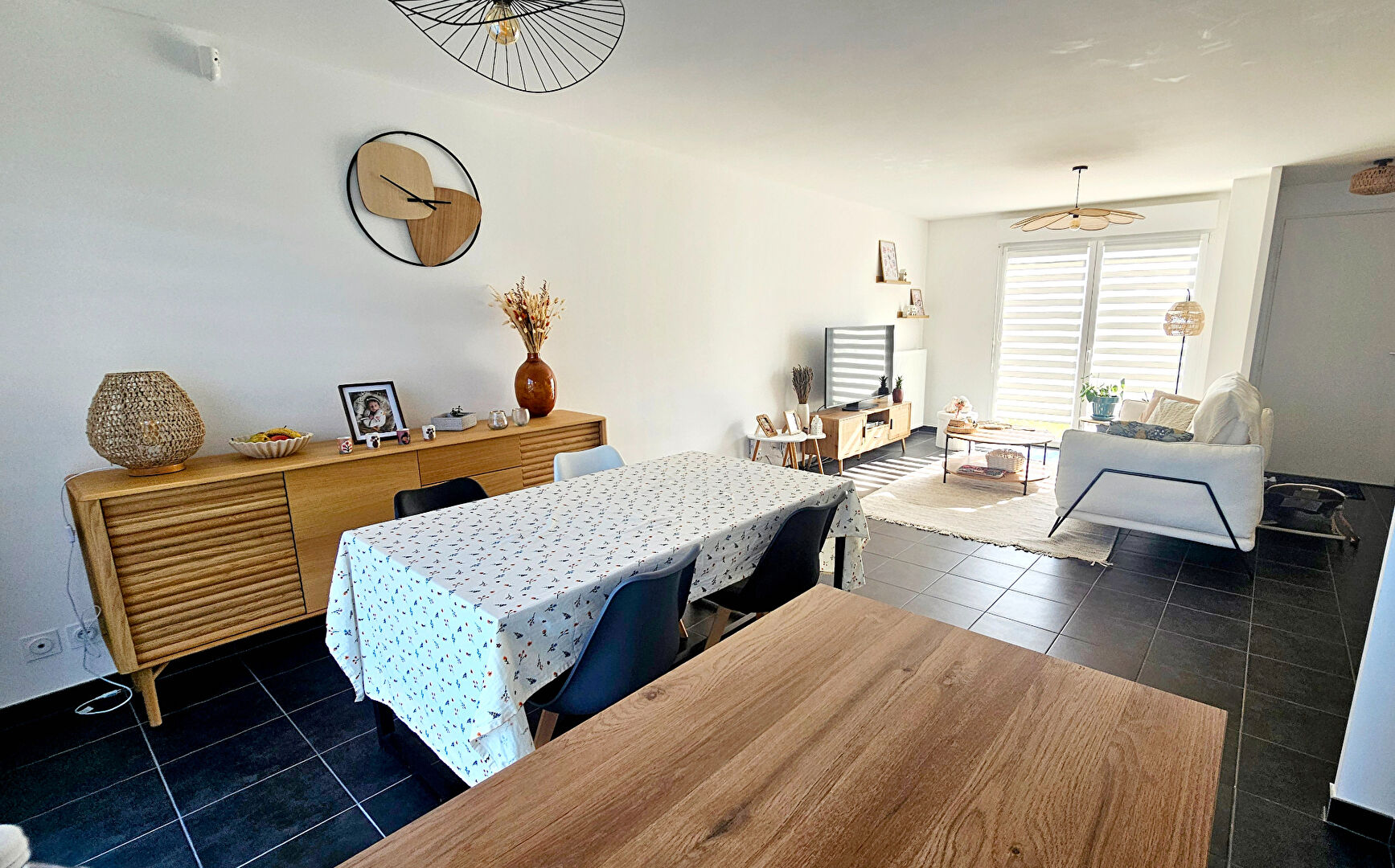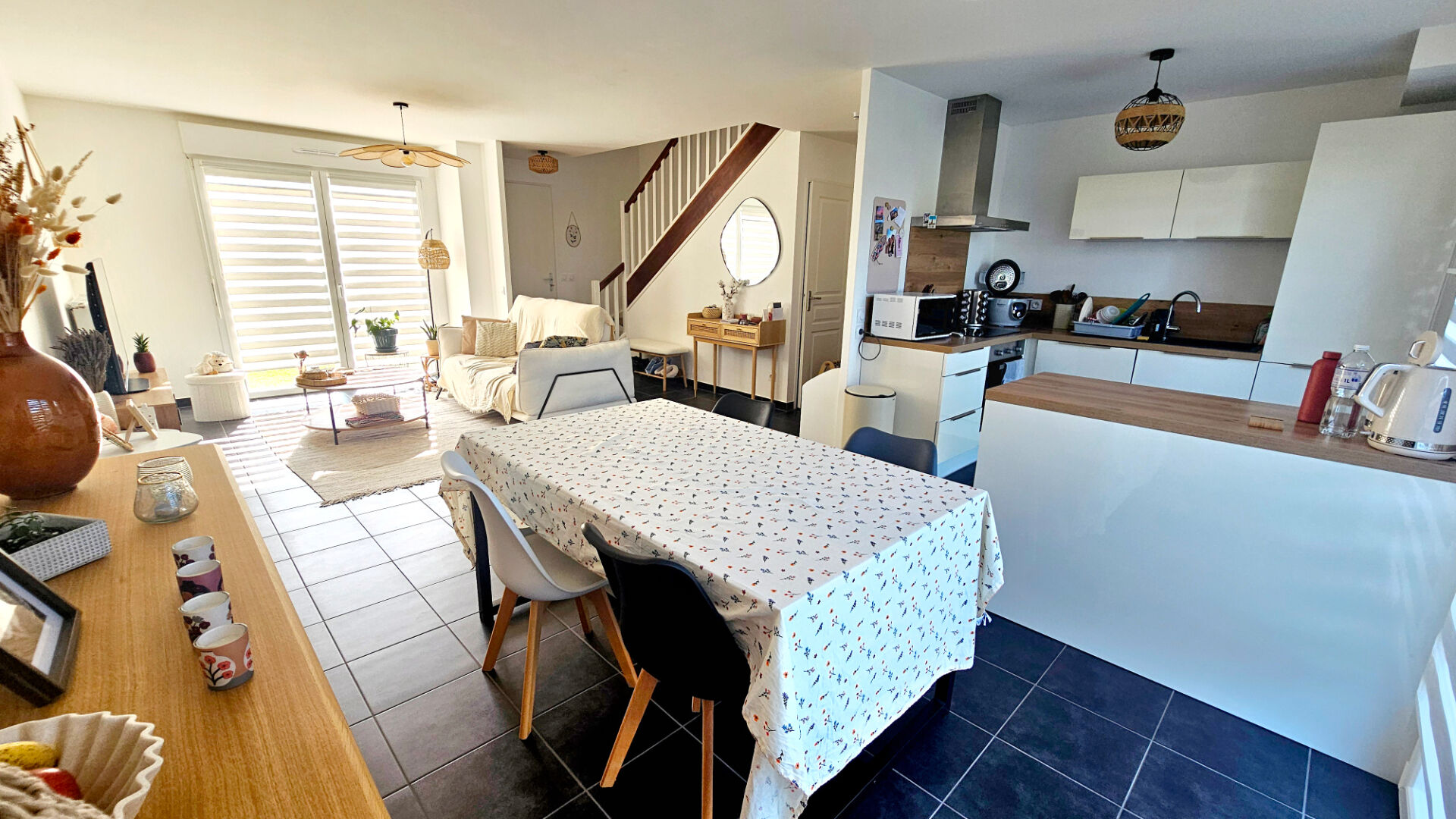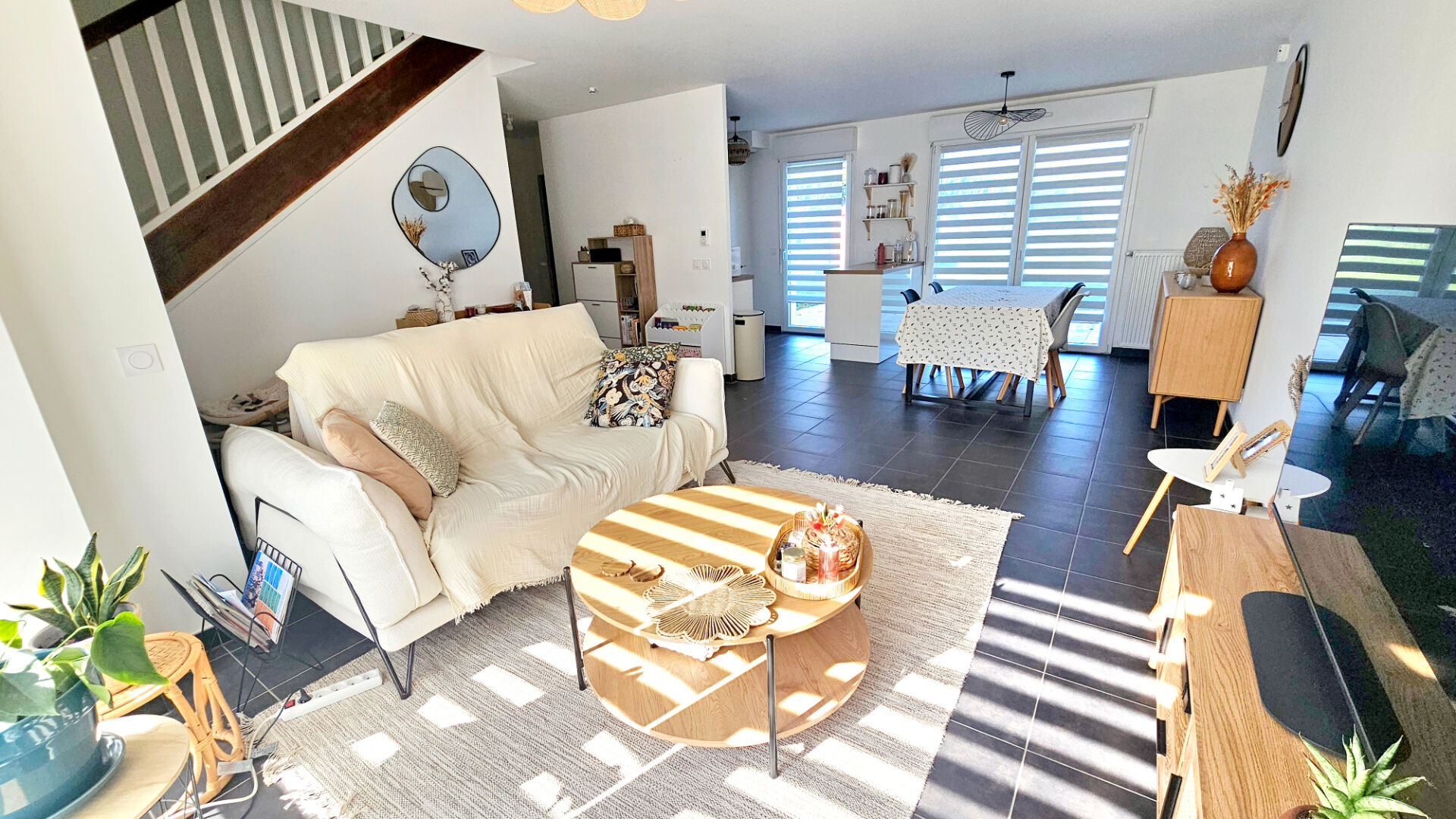 Au rez-de-chaussée, vous serez séduit par un spacieux double séjour lumineux, ouvert sur une cuisine moderne entièrement équipée, offrant un accès direct à une terrasse conviviale et au jardin.