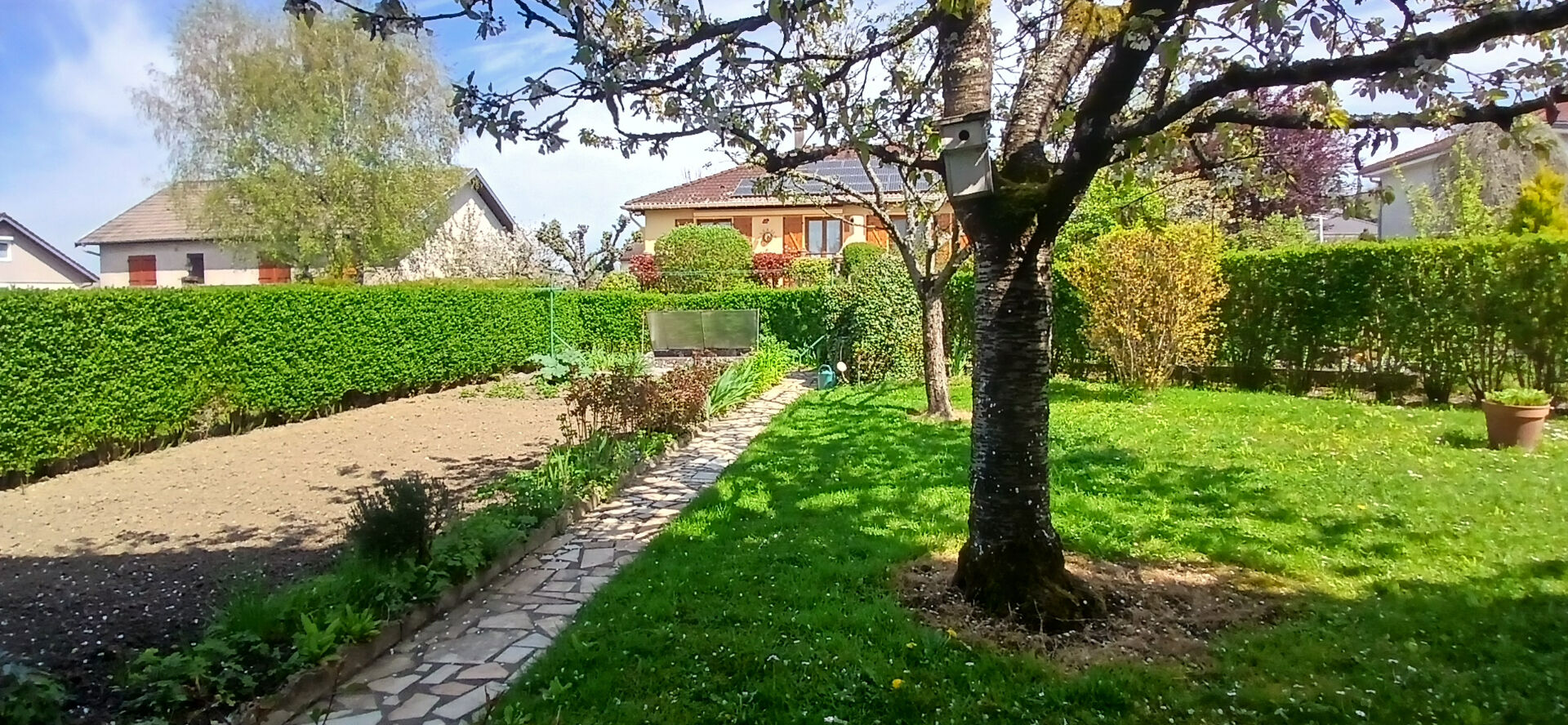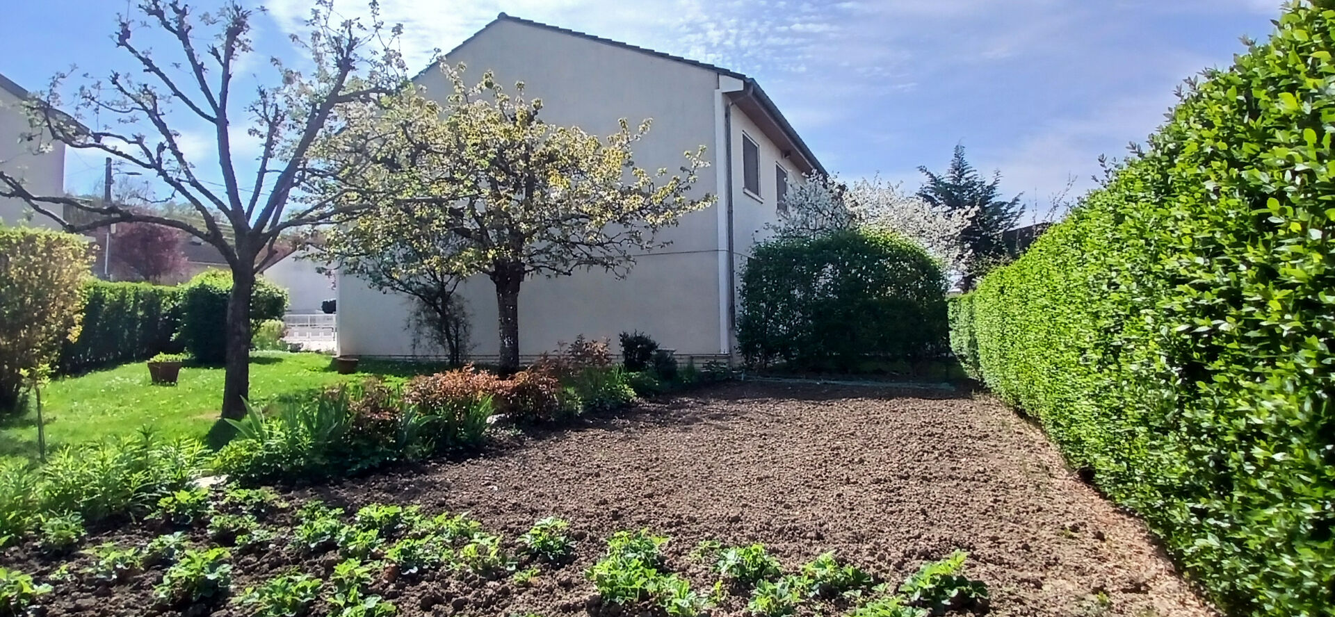 édifiée sur un terrain de 475m², cette maison offre de beaux volumes ainsi qu'une luminosité remarquable idéale pour une famille nombreuse. Elle se compose d'un vaste salon, spacieux et baigné de lumière, idéal pour des moments de convivialité en famille ou entre amis. Cuisine indépendante équipée, aménagée et meublée, permet de profiter d'un espace fonctionnel et bien distinct, parfait pour cuisiner en toute tranquillité. A l'étage, vous trouverez trois chambres ainsi qu'une salle de bain et WC indépendant, assurant confort et praticité au quotidien. Les chambres bénéficient d'une vue agréable sur le jardin et sur la terrasse, idéale pour profiter des beaux jours.