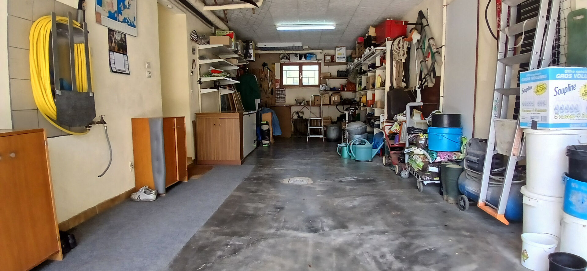 Sous -sol cuisine d'été Cellier garage porte électrique.