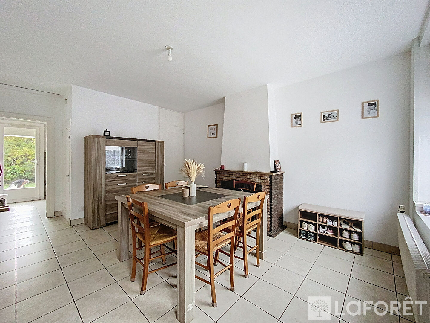 Au rez-de-chaussée, vous trouverez une pièce de vie spacieuse avec une jolie cheminée décorative, une cuisine aménagée et équipée ainsi qu'une salle d'eau.