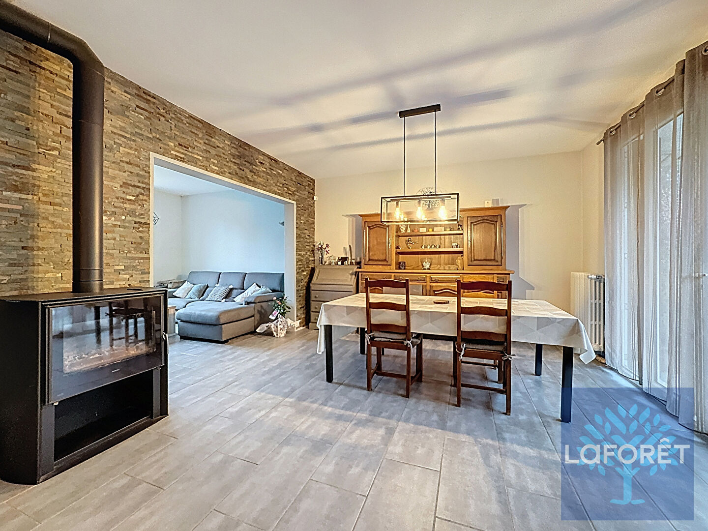 Édifiée sur un sous-sol total, elle offre une organisation fonctionnelle et un beau potentiel d'évolution. Au niveau principal, vous découvrirez un lumineux séjour double agrémenté d'un poêle à bois, ouvert sur une agréable vue sur le jardin arboré. La cuisine indépendante, meublée, permet un aménagement pratique et convivial. Deux chambres de plain-pied complètent ce niveau.