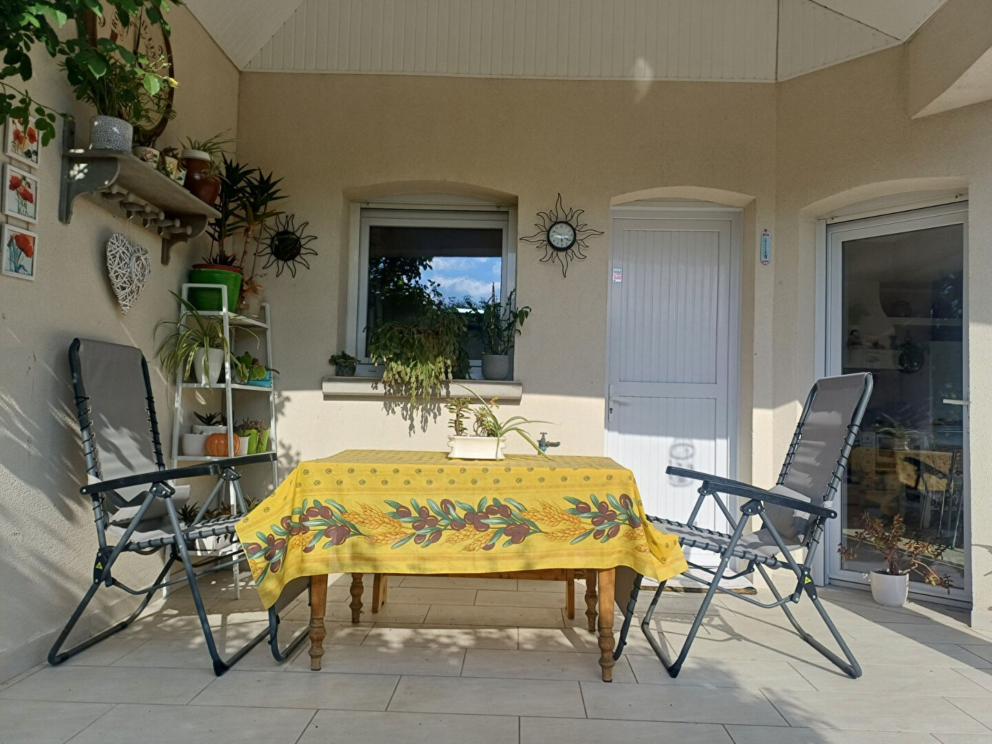 A l'étage 3 chambres, un dressing, une salle de bain et un WC indépendant. Garage 1 voiture et 4 places de stationnement dans la propriété