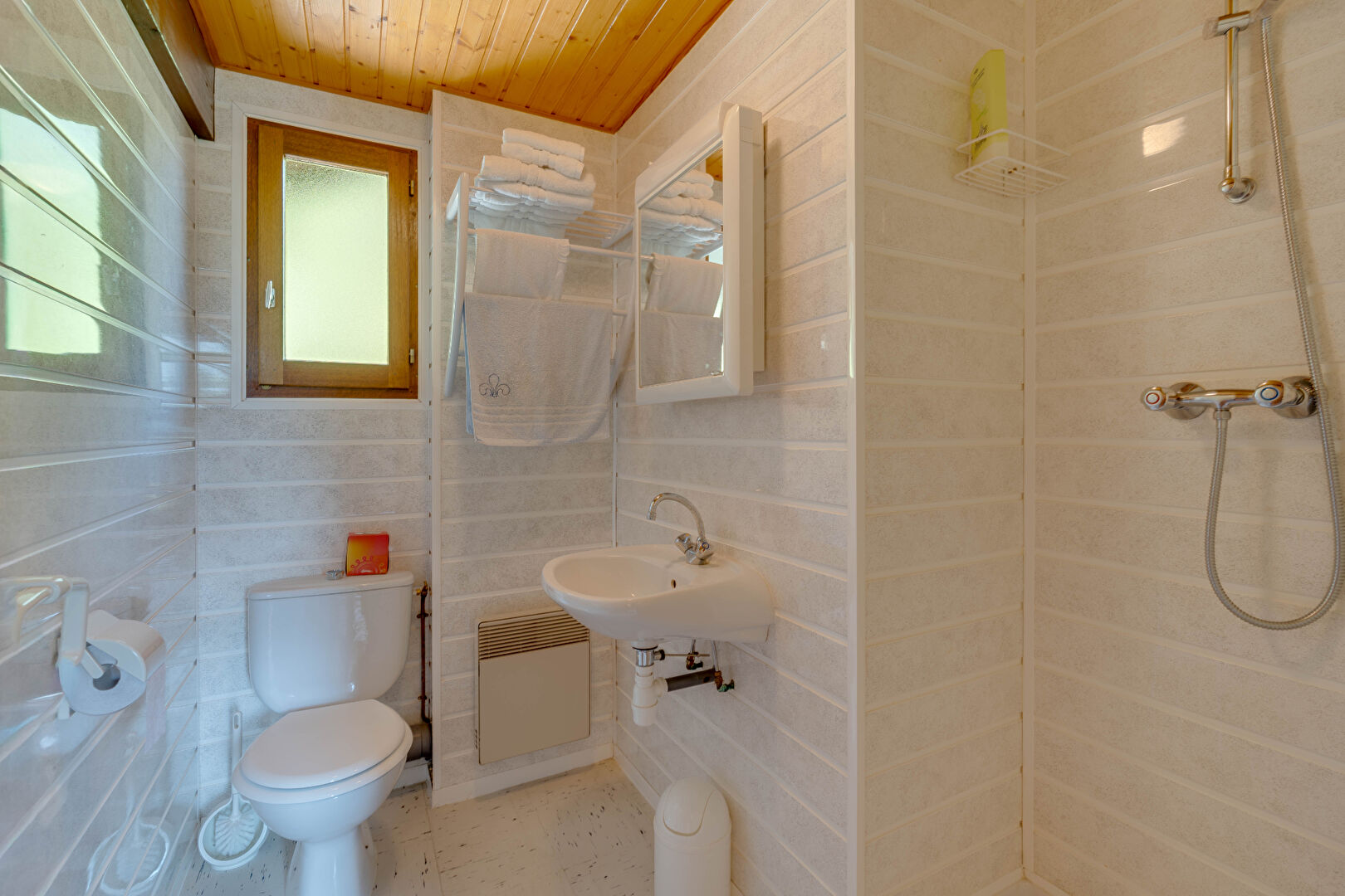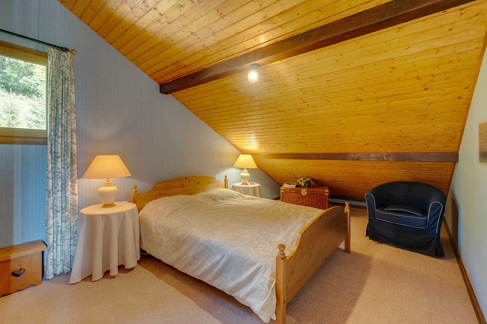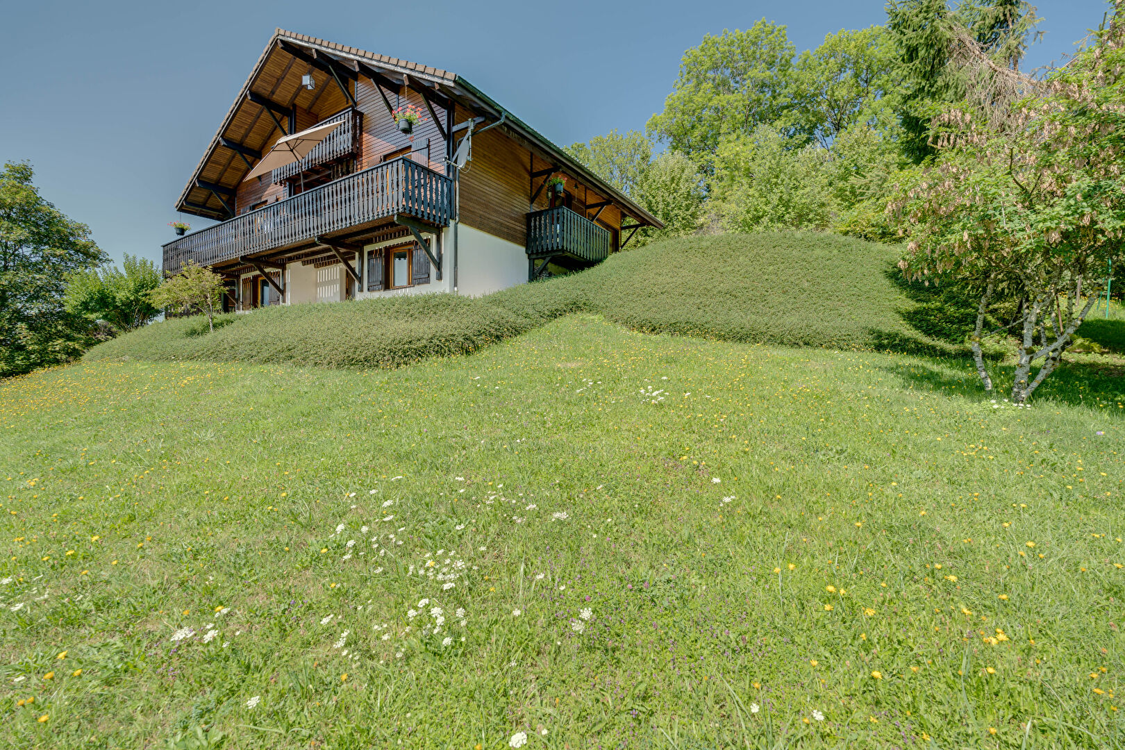 En rez-de-jardin, vous disposerez de 2 chambres,1 entrée indépendante, une salle de bains avec wc ainsi que de la buanderie disposant d'une partie atelier même si ce chalet très bien entretenu vous permettra de poser vos valises de suite.