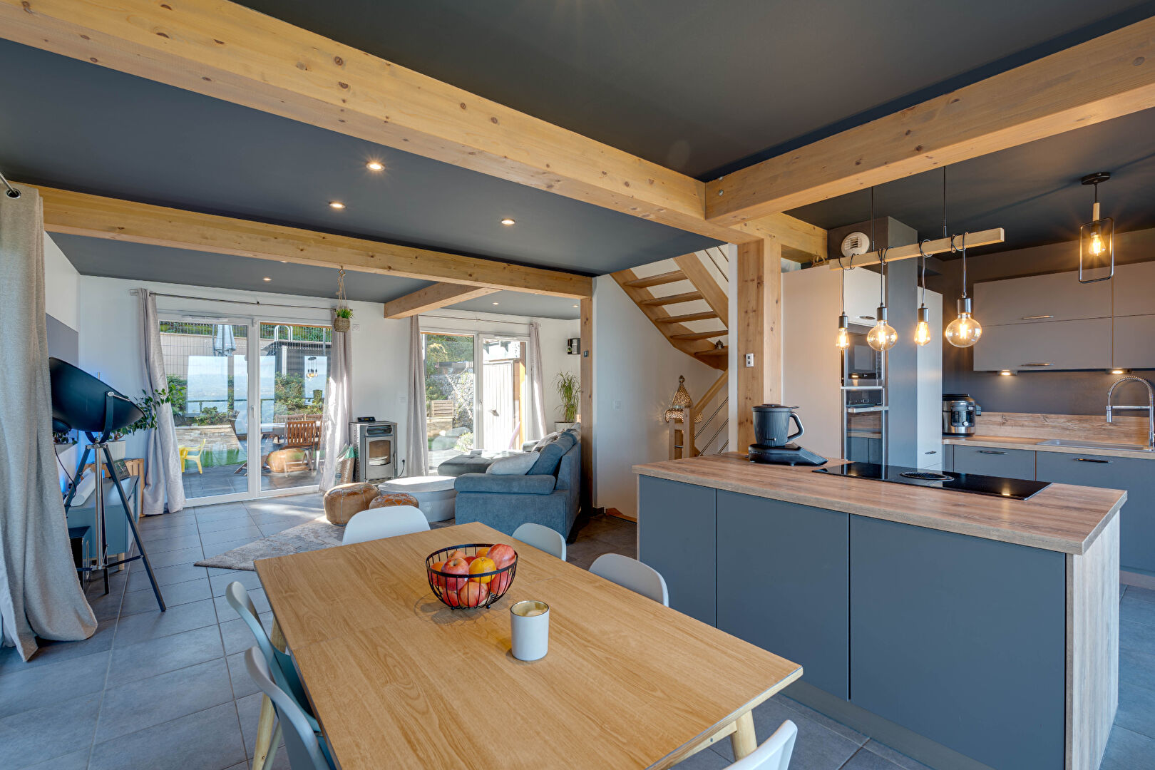 Cette propriété de plus de 100 m² dénommée en type 4 bénéficie d'une belle entrée donnant accès à un garage équipé d'une borne électrique et d'une porte automatique, et vous n'aurez qu'à monter quelques marches pour en prendre plein les mirettes ! Au menu de cet étage : une grande pièce de vie de plus de 40 m² avec la cuisine entièrement équipée, et un accès à 2 vastes terrasses dont l'une équipée d'une piscine autoportée.