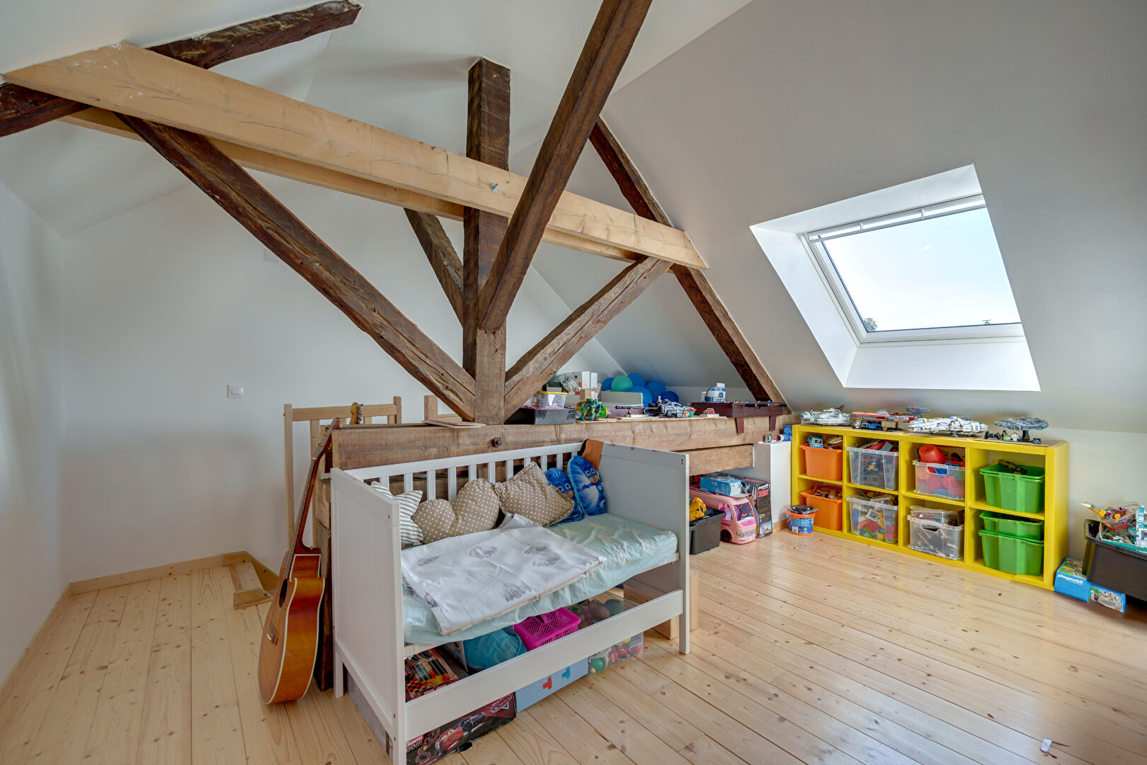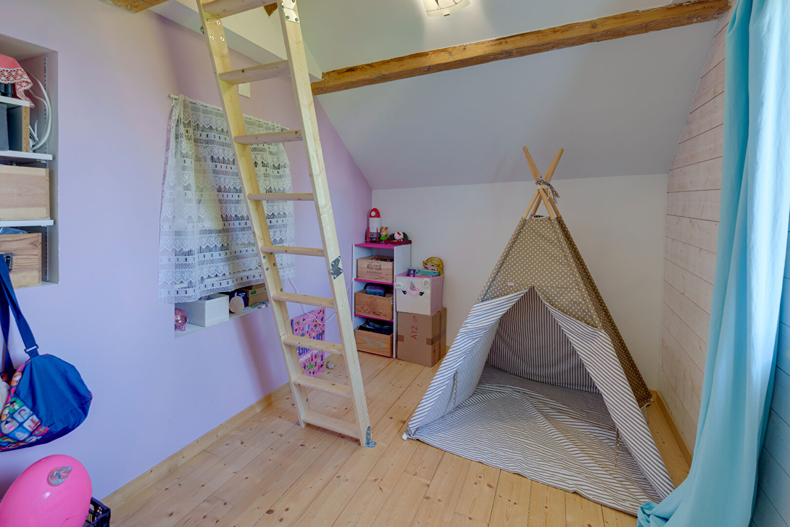 Profitez d'un espace de vie agréable de 40 m² avec une cuisine aménagée, idéal pour vos moments en famille. La maison offre 3 chambres dont une avec un coin cabane ,1 bureau ainsi qu'une spacieuse mezzanine de 18 m² aux poutres apparentes, apportant une touche d'authenticité et de caractère indéniable, salle de bains/WC au rez et salle d'eau wc à l'étage.