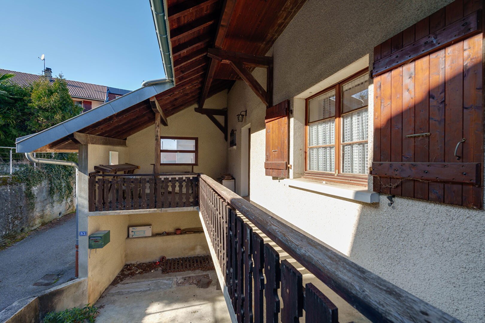 Au rez-de-chaussée, vous trouverez un appartement de 3 pièces de 54 m², accompagné d'une terrasse de 31,94 m² exposée plein sud. Parfait pour profiter du soleil et de la vue sur le lac avec une petite particularité qui ne manque pas de charme : le WC est à l'extérieur. Oui, c'est original. Certains appellent ça rustique, d'autres diront que c'est une excellente façon de prendre l'air.
