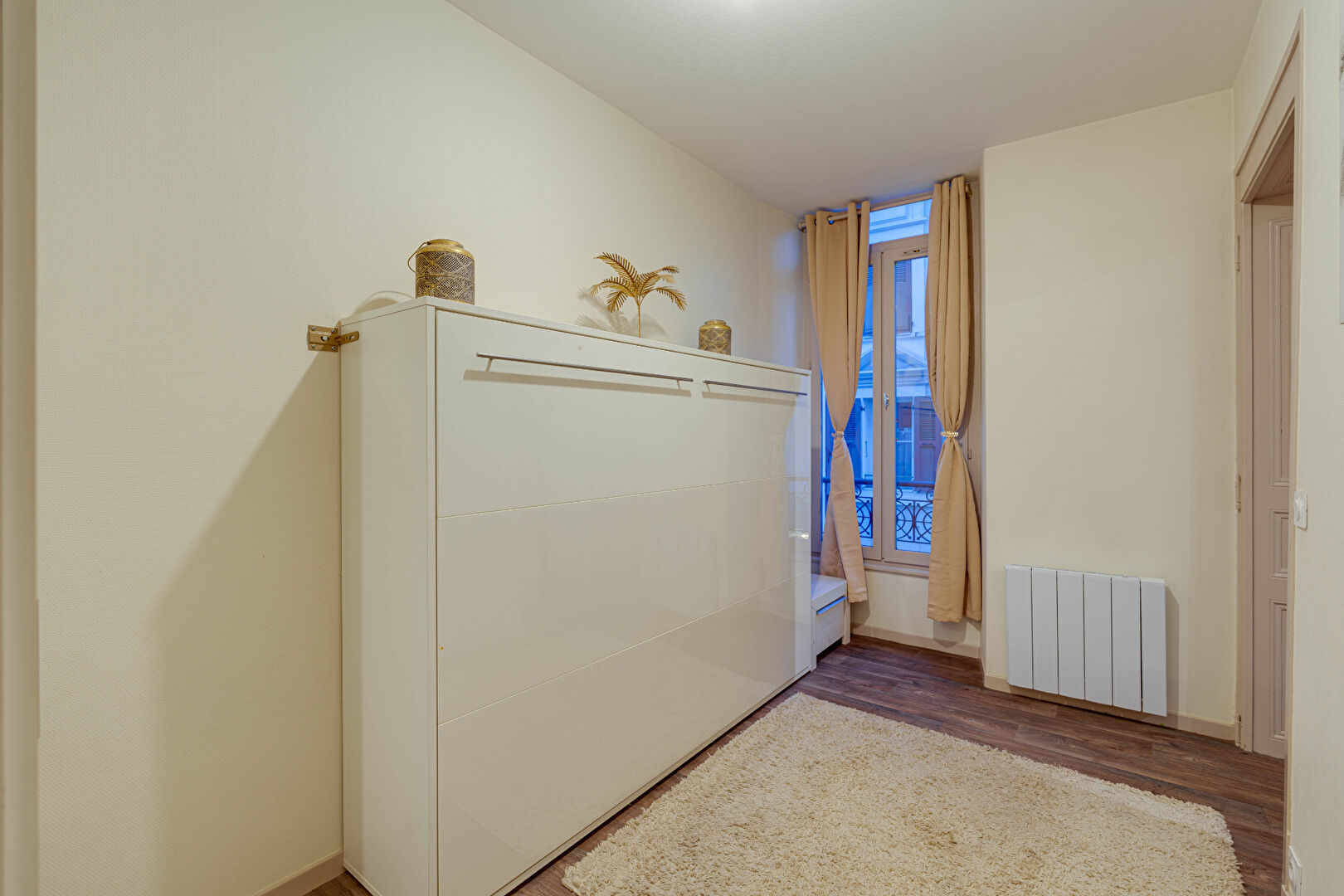 L'appartement dispose également d'une chambre de 8,19 m², aménagée avec un lit dépliable permettant d'optimiser l'espace. Cette chambre donne accès à une salle de bain fonctionnelle, complétée par une buanderie privative équipée d'une machine à laver et d'un sèche-linge, offrant un réel confort d'usage.
