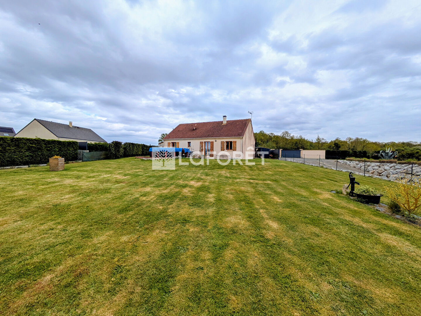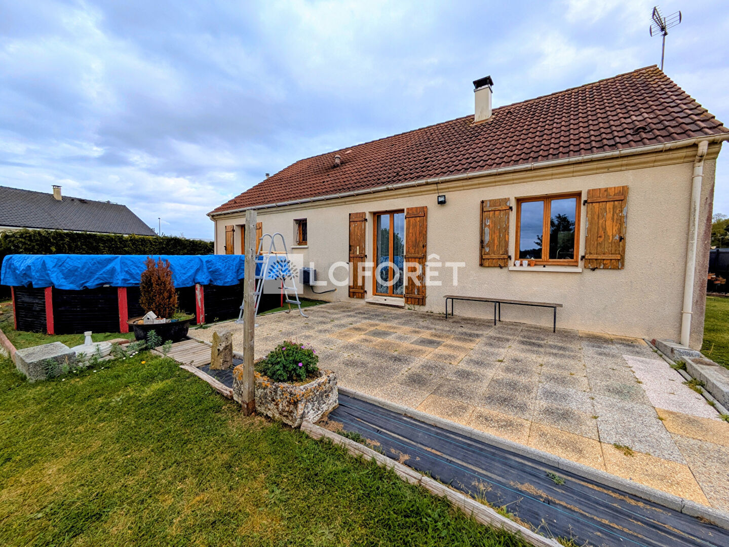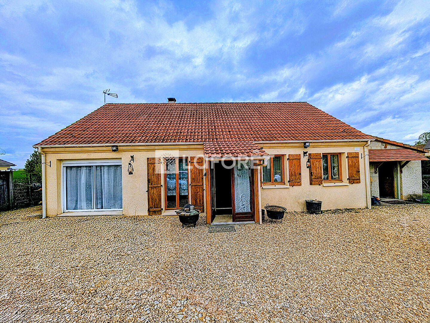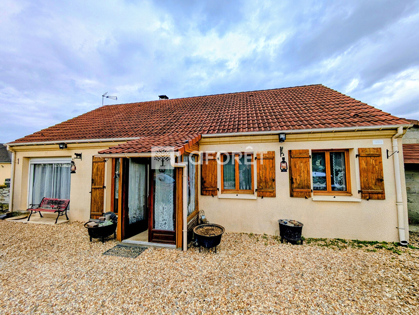 D'une surface d'environ 97 m², elle se compose d'un séjour lumineux, d'une cuisine, de plusieurs chambres, d'une salle d'eau ainsi que de nombreux espaces de rangement. Sa configuration de plain-pied en fait un bien pratique au quotidien, idéal pour une famille comme pour un couple recherchant du confort.