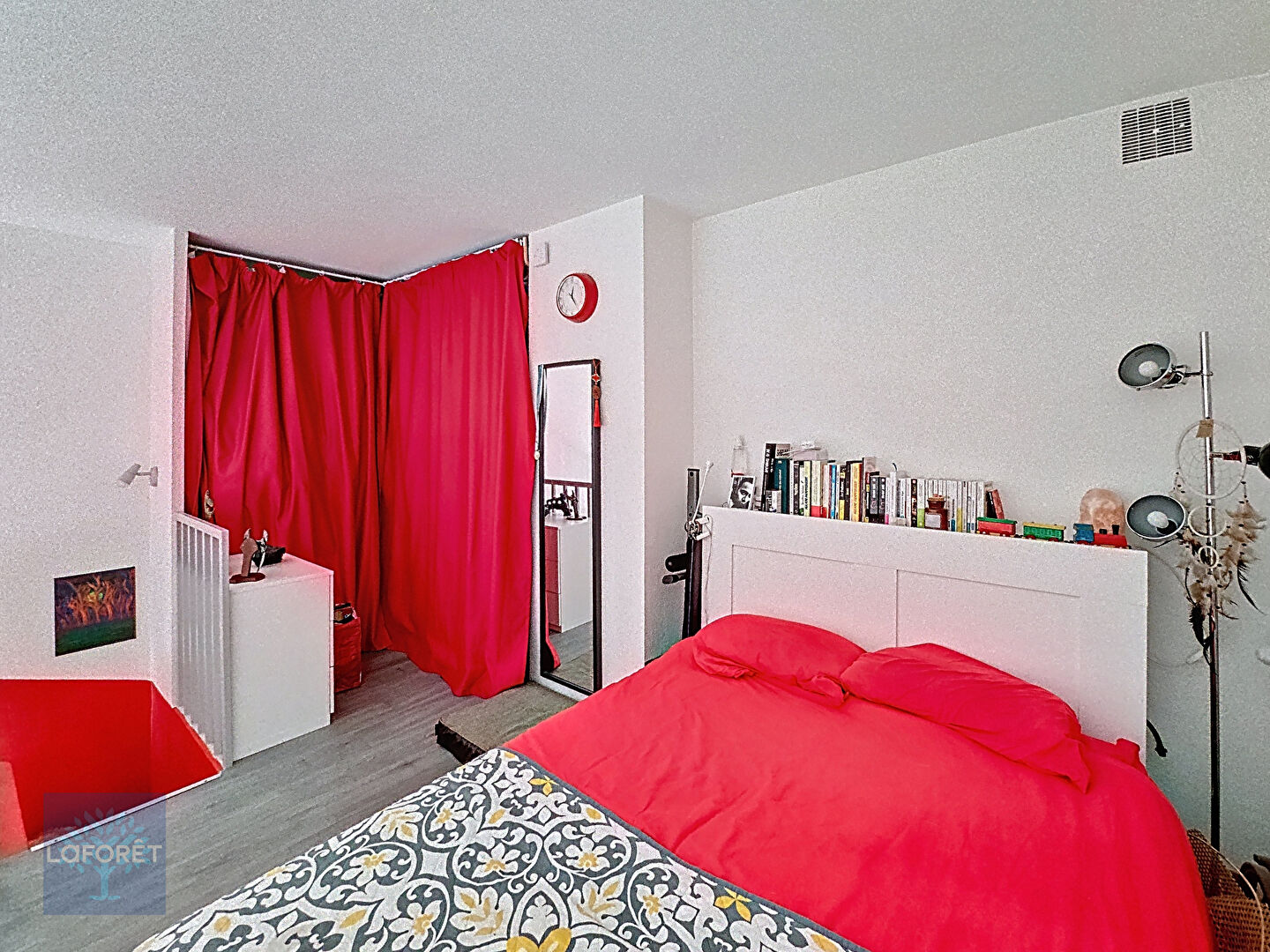 Et en mezzanine un espace nuit avec dressing.