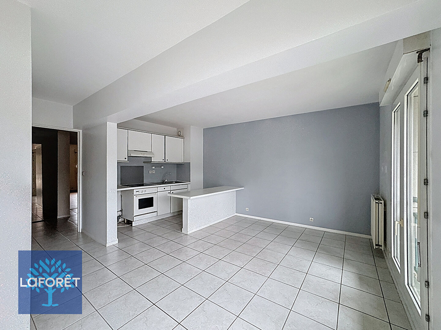 Proches de commodités et transports un spacieux appartement de deux pièces au 2ème étage avec ascenseur comprenant : une entrée avec rangements, un séjour lumineux avec cuisine ouverte aménagée et équipée, un dégagement donnant accès à une grande chambre avec rangement, une salle de bains et un WC séparé.