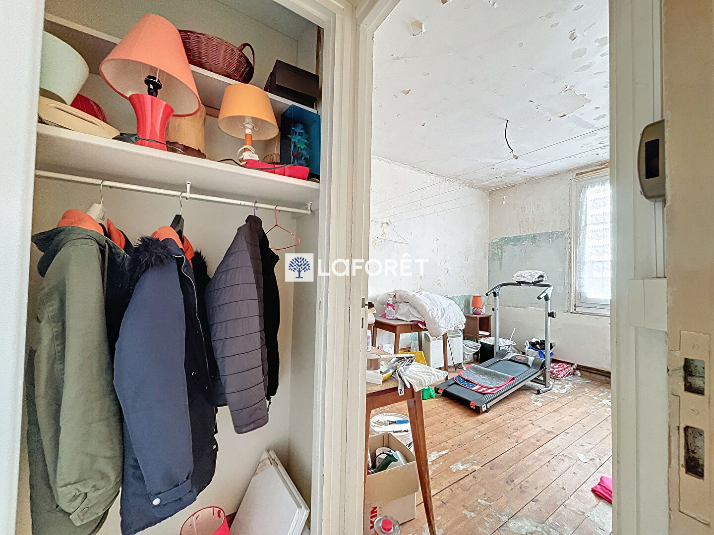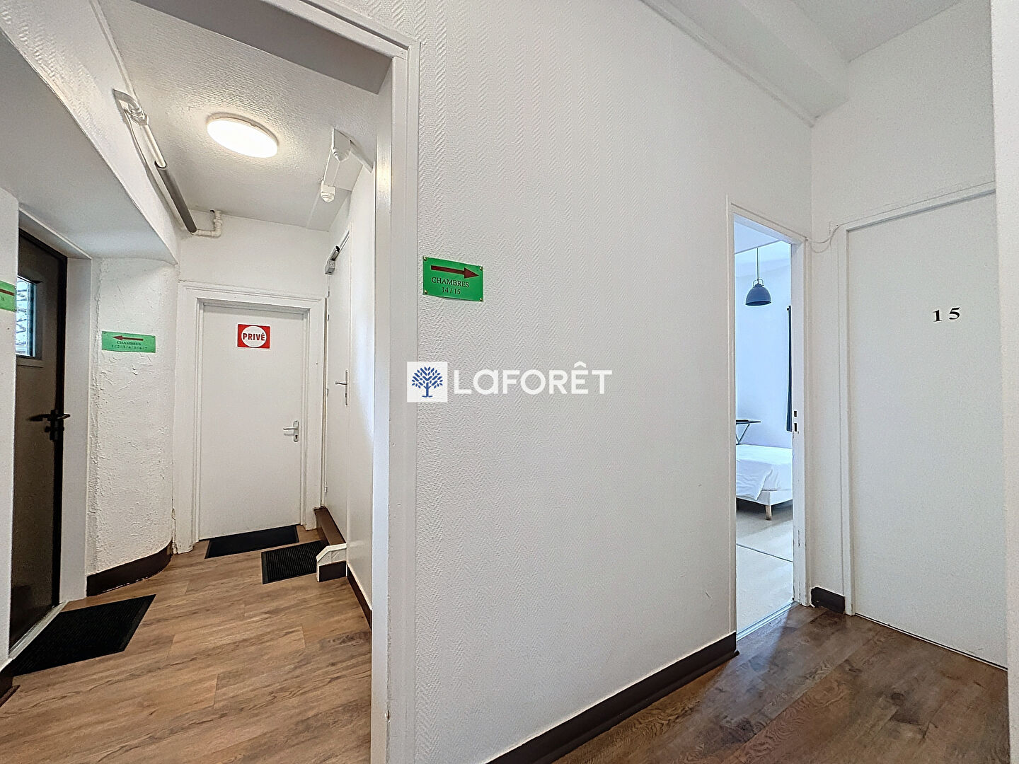 L'étage vous offre dix chambres rénovées et après travaux un potentiel de six autres .