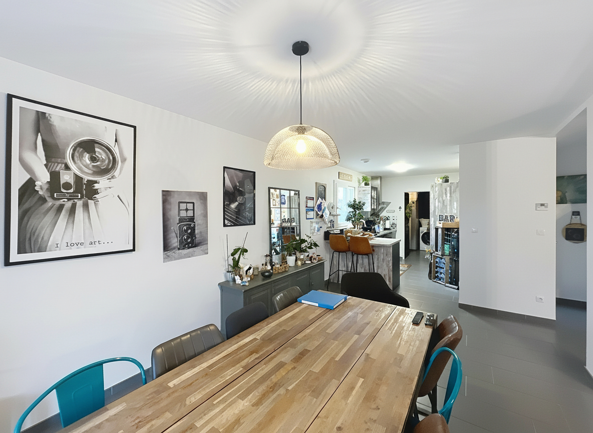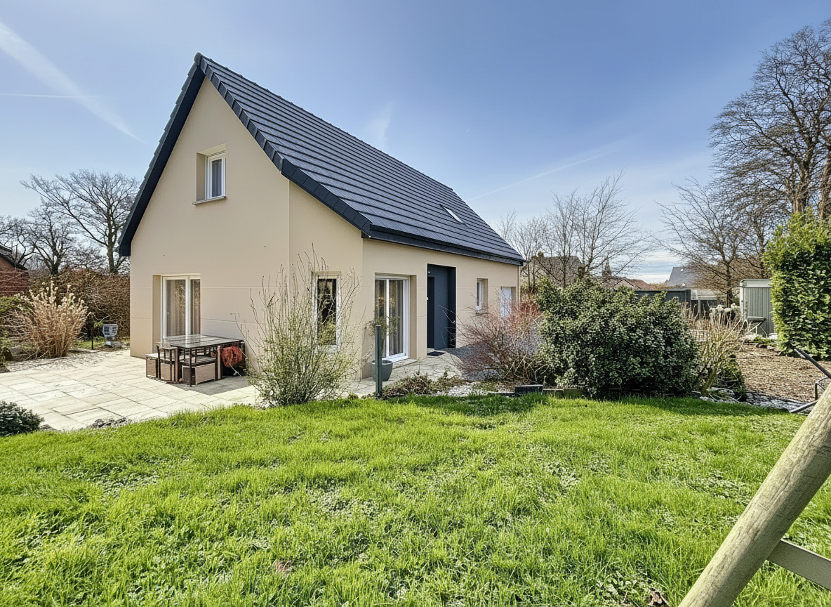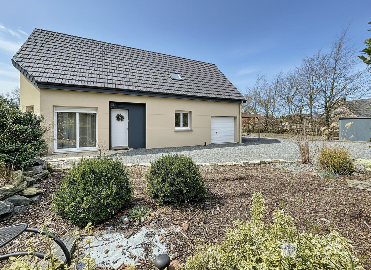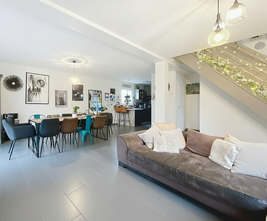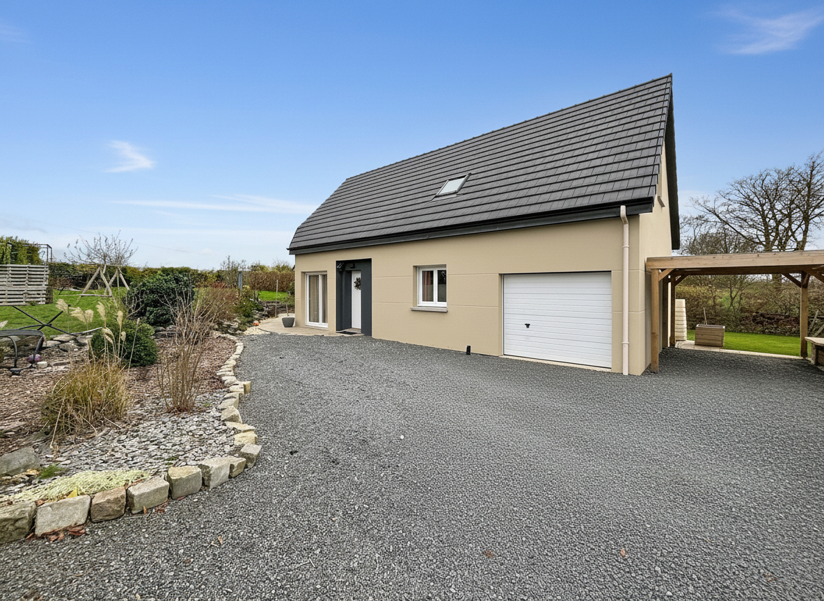 Le chauffage par pompe à chaleur garantit une consommation maîtrisée. Le bien dispose d'un garage attenant, d'un carport et d'un cabanon sur un terrain privatif de 1 380 m². Aucun travaux à prévoir.