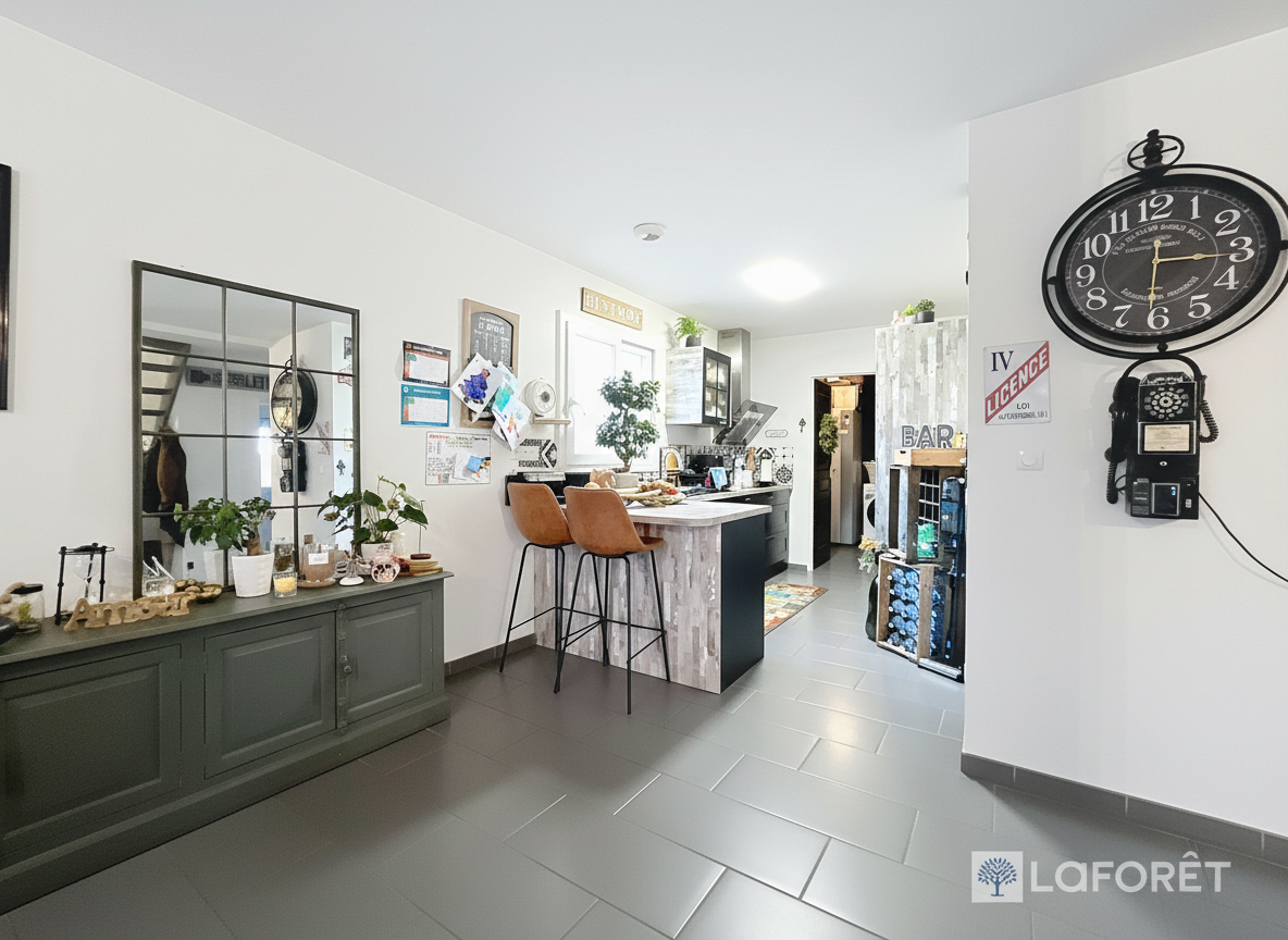 Elle se compose au rez-de-chaussée, d'une grande pièce de vie lumineuse s'ouvrant sur une cuisine aménagée et équipée fonctionnelle, complétée par un cellier. Une belle suite parentale avec salle d'eau privative.