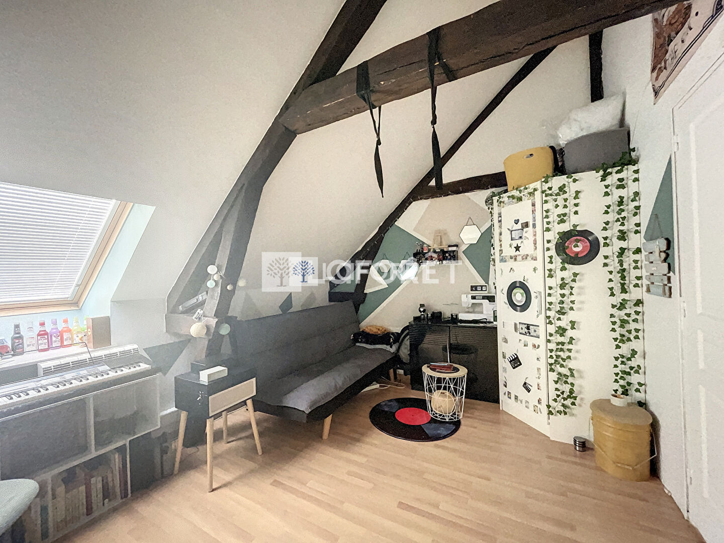 Elle se compose au rez-de-chaussée d'une entrée, d'une cuisine aménagée, d'un séjour lumineux de 30 m² , ainsi que d'une chambres. Un demi niveau accueille une buanderie et des toilettes.