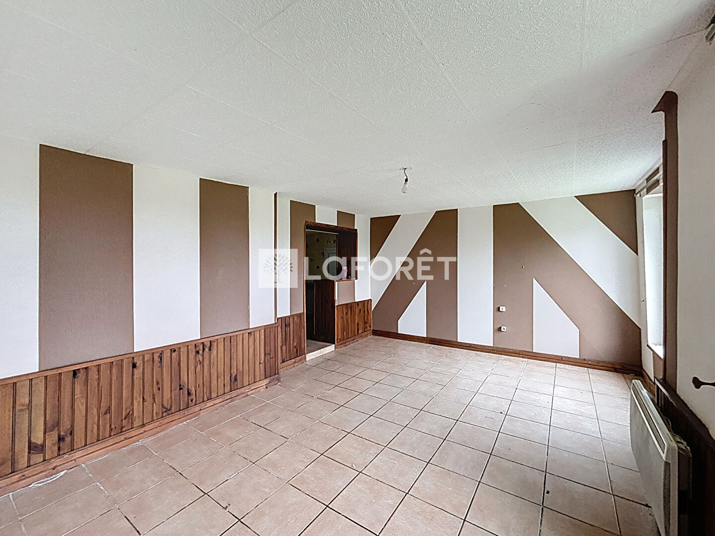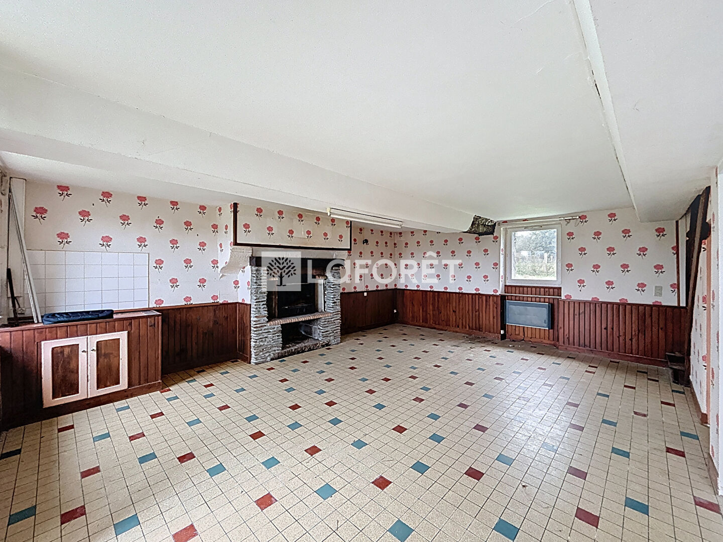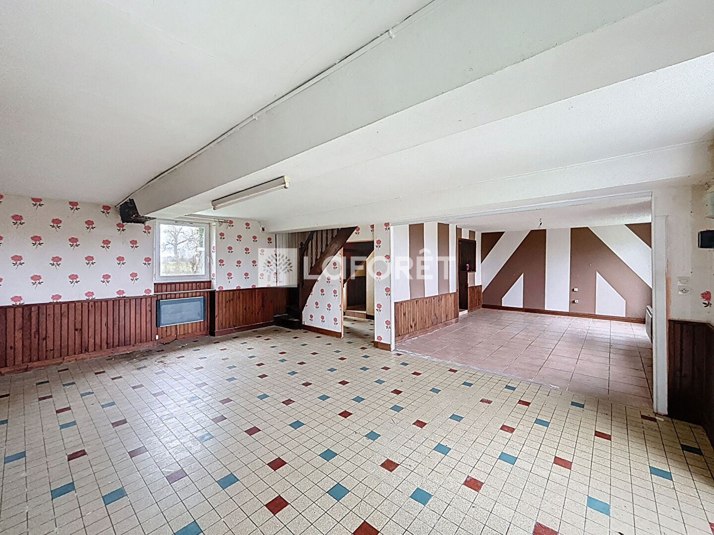 Au rez-de-chaussée, vous trouverez un grand salon-séjour, une cuisine ouverte avec arrière-cuisine, permettant d'imaginer un bel espace de vie après travaux.