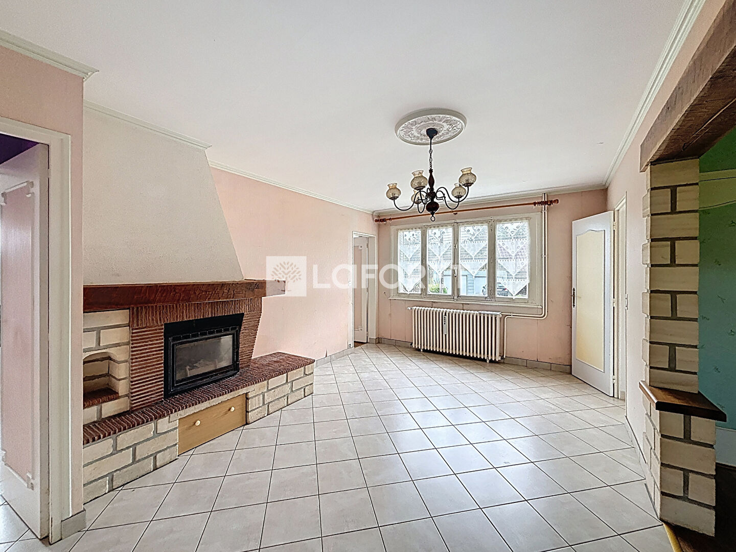 Salle/salon lumineux avec cheminée