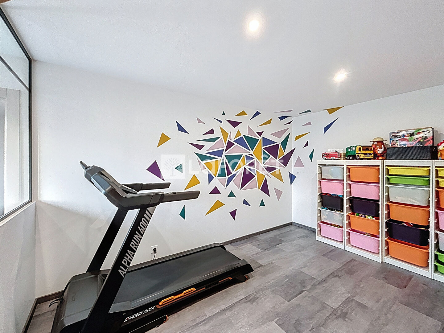 Au rez-de-chaussée, vous découvrirez un salon-séjour lumineux, une cuisine aménagée et équipée, une salle de jeux, une arrière-cuisine et un WC.