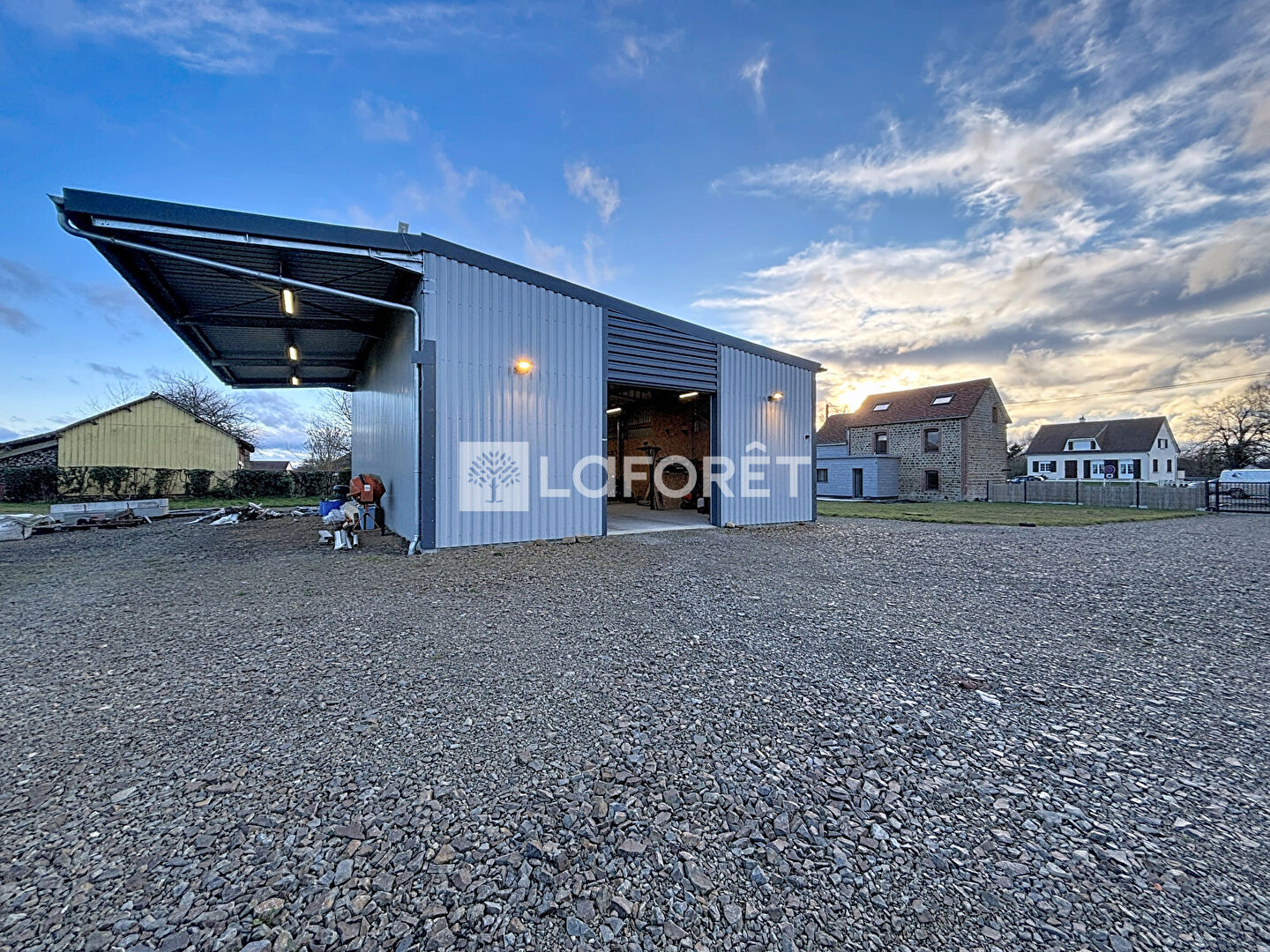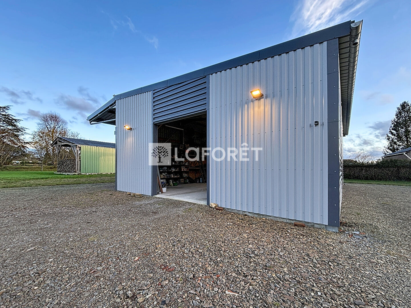 Implantée sur un terrain de 2 500 m², la propriété dispose d'un carport, d'un garage ainsi que d'un bâtiment indépendant de 150 m², offrant de nombreuses possibilités d'exploitation : activité professionnelle, stockage, atelier, transformation en espace habitable ou locatif.