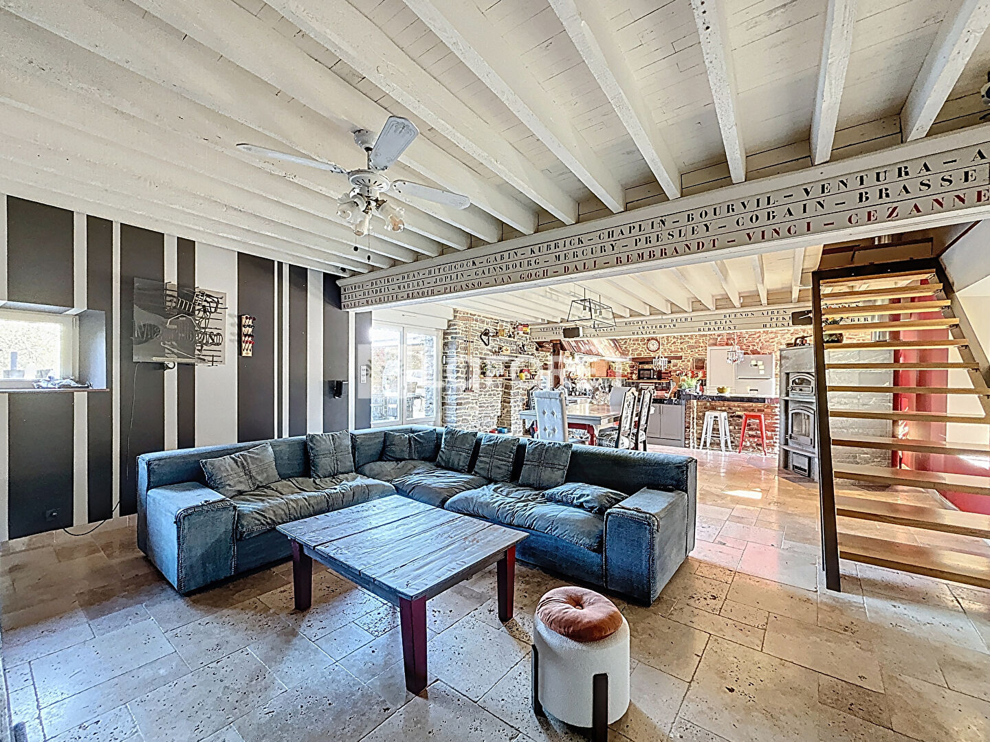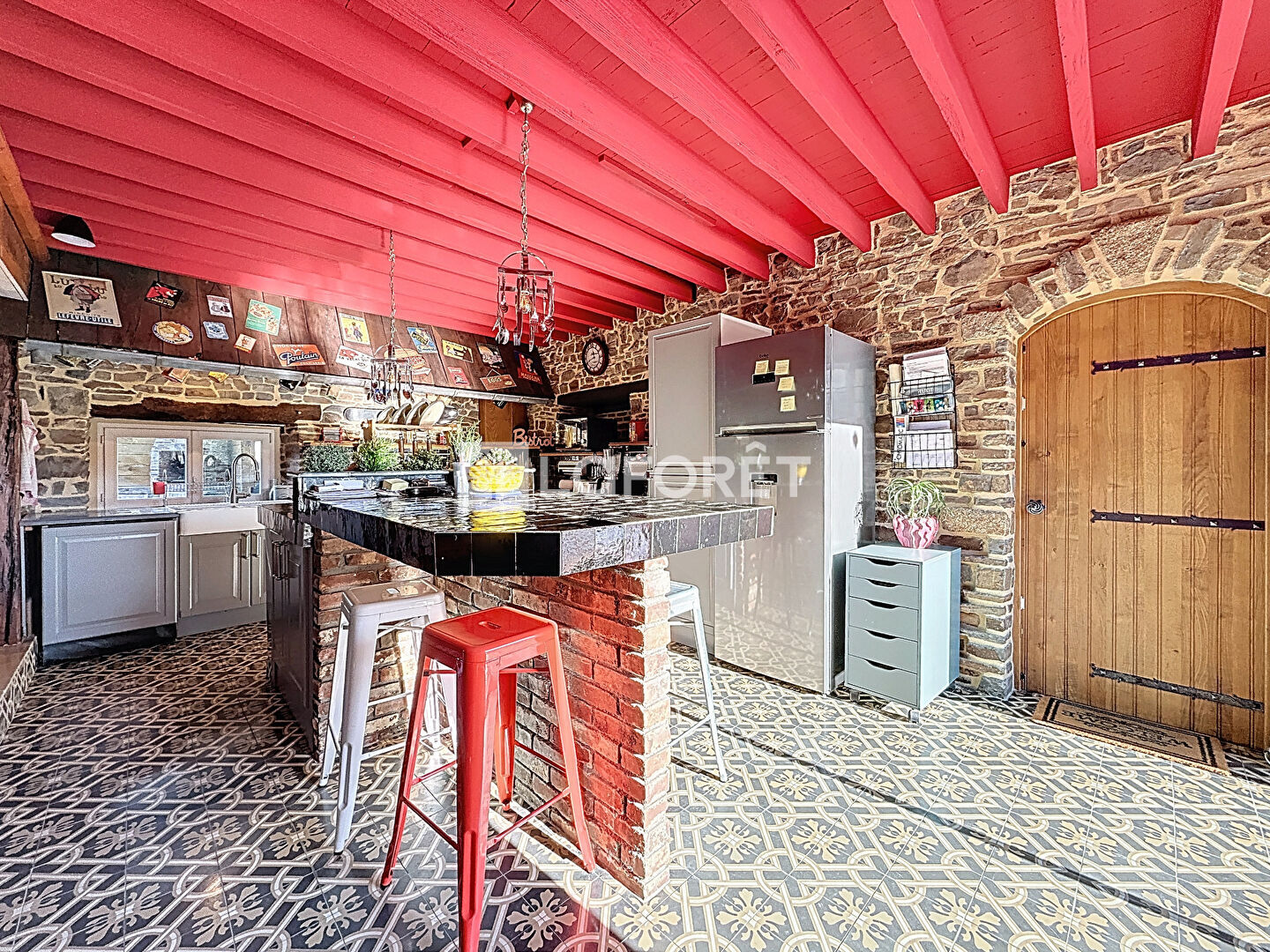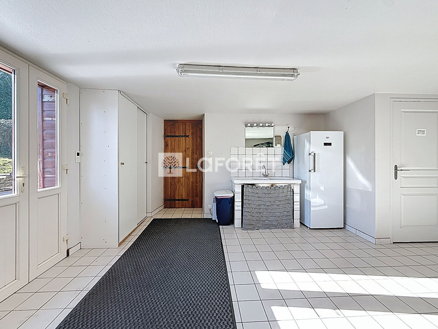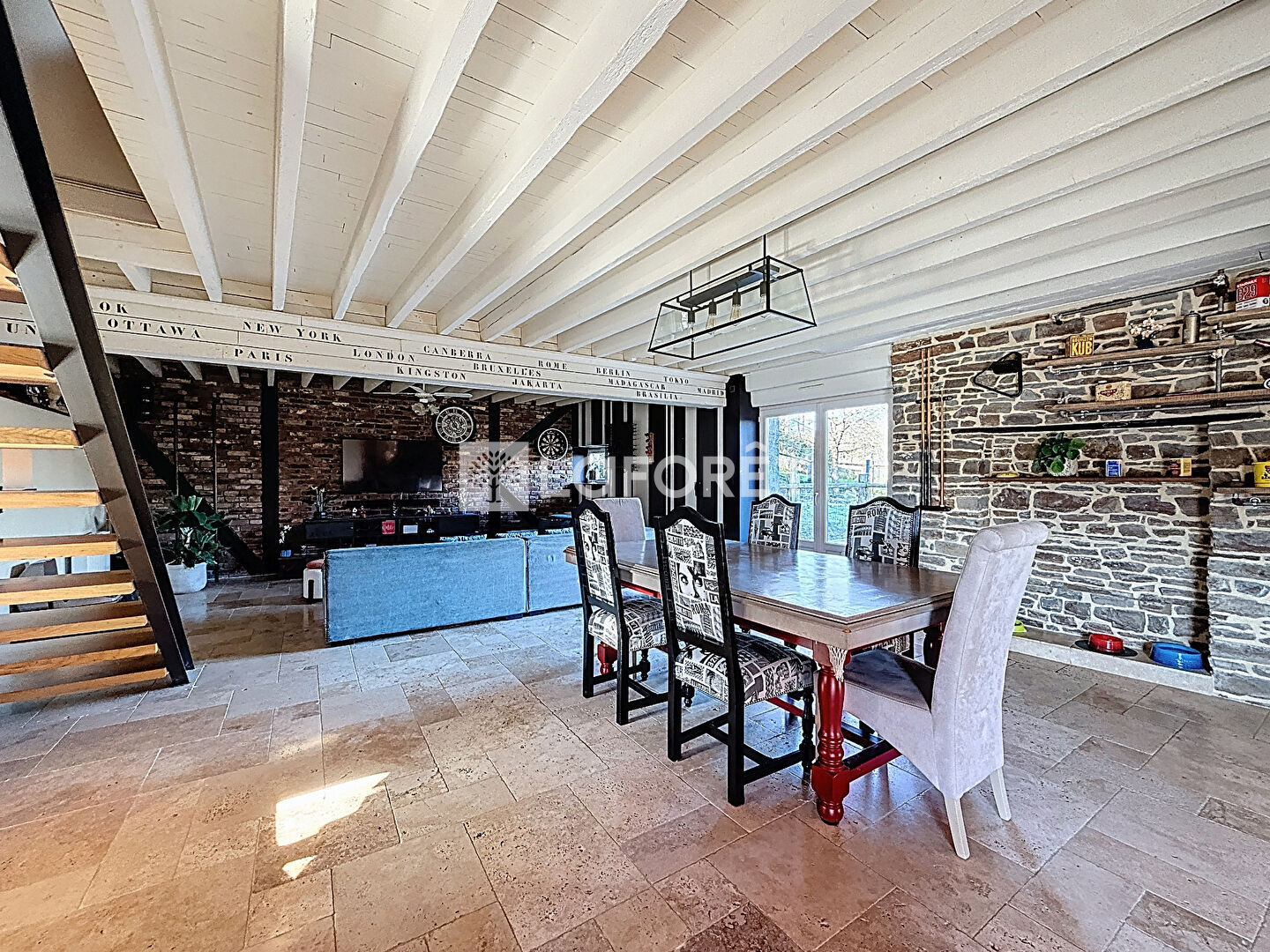 Comprenant au rez-de-chaussée : une grande pièce de vie ouverte de 70 m² avec cuisine aménagée et équipée et poêle de masse. Une arrière cuisine de 19 m² avec buanderie et WC.