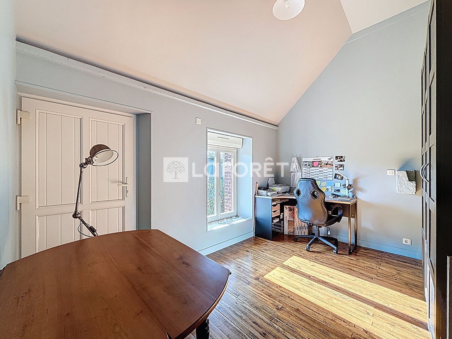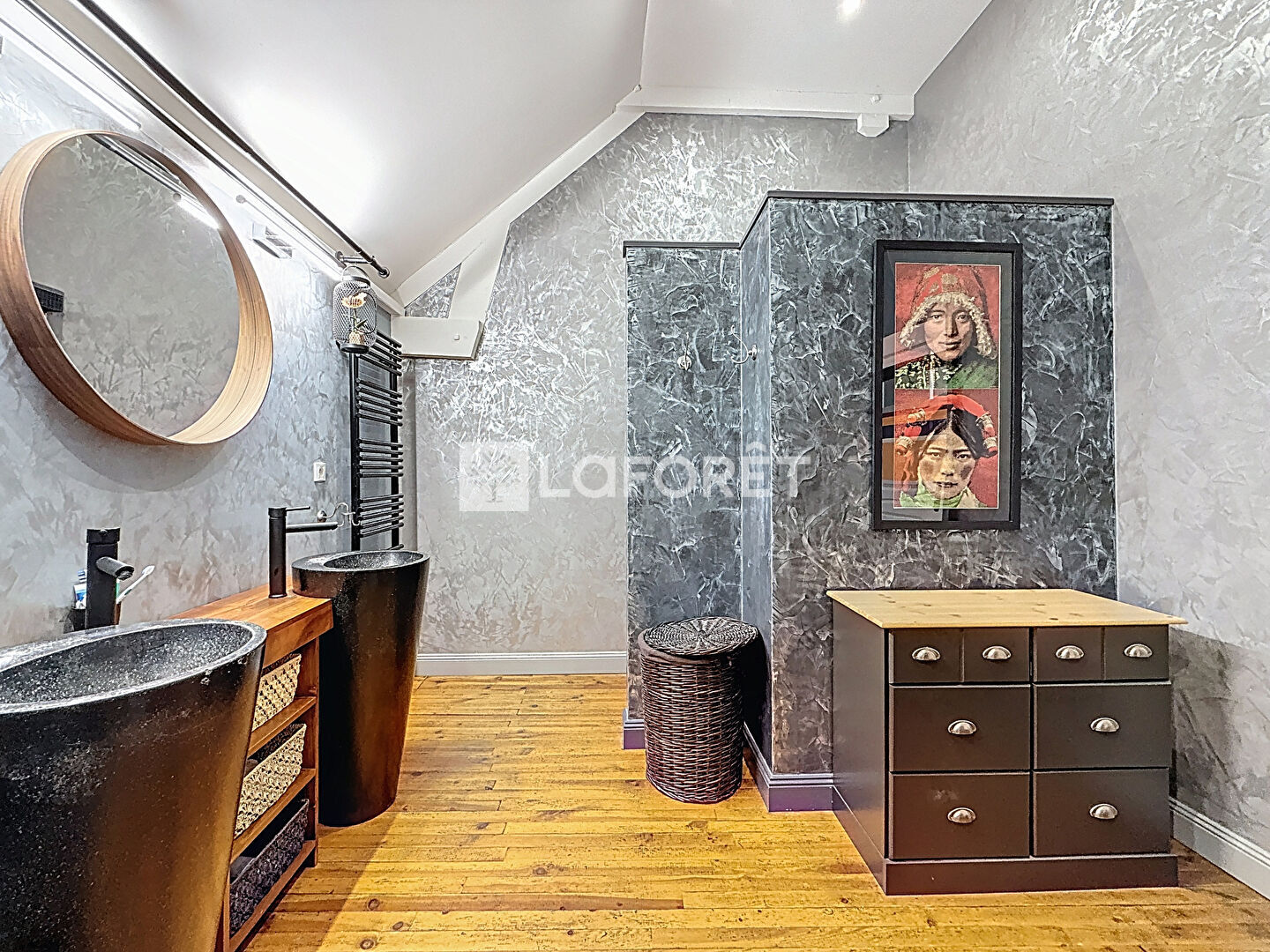 À l'étage, un palier dessert une grande chambre avec dressing, une salle d'eau avec WC et deux chambres.