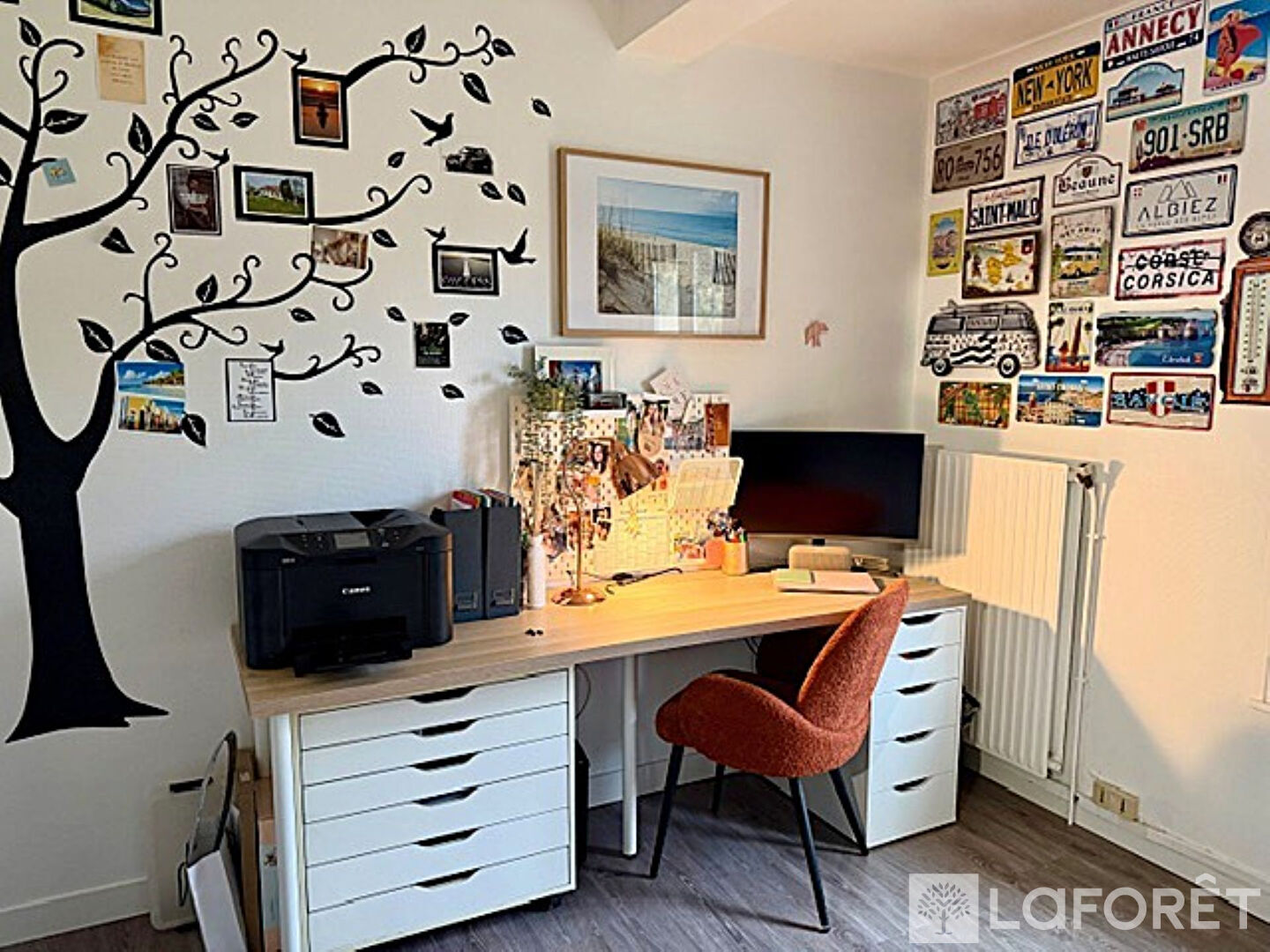 La maison se compose au rez de chaussée d'une entrée accueillante, d'un double salon séjour lumineux, d'une cuisine aménagée et équipée, ainsi que d'un bureau, idéal pour le télétravail.