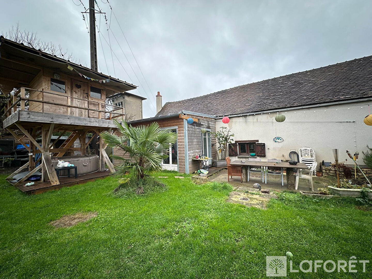 Un double garage, un bûcher et une piscine hors sol en bois complètent cet ensemble parfait pour profiter des beaux jours.