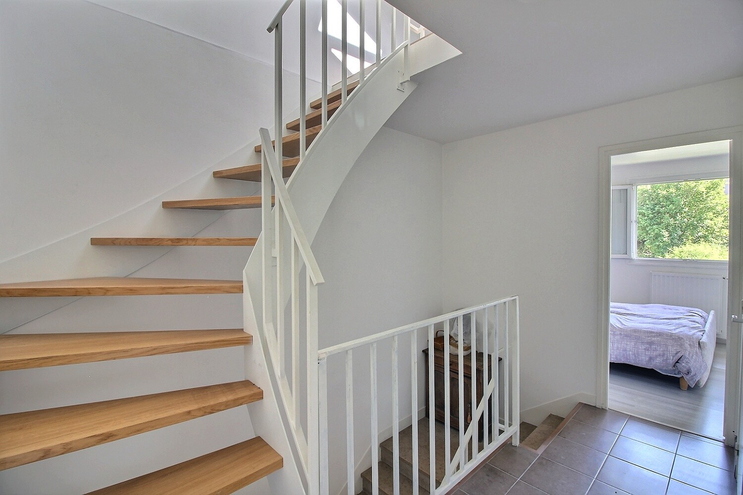 Au rez-de-chaussée, elle se compose d'un vaste double séjour lumineux avec cheminée, d'une chambre, d'une cuisine indépendante avec accès direct au jardin, ainsi que de toilettes séparées.