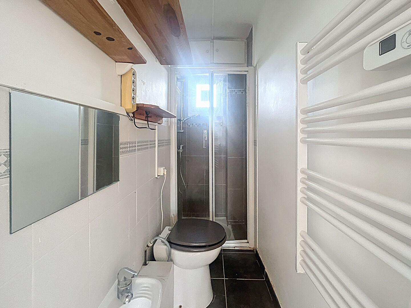 Il se compose d'un séjour lumineux avec cuisine ouverte, d'une grande chambre, ainsi que d'une salle d'eau avec WC sanibroyeur (possibilité d'installer un WC classique).