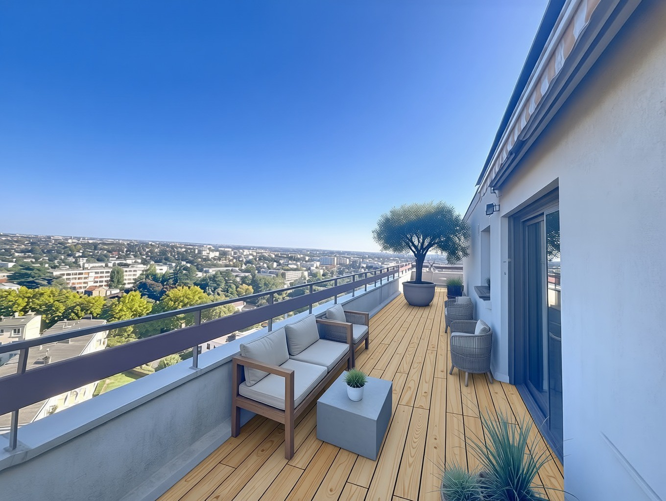 Rare sur le marché, il offre un cadre de vie incroyable grâce à sa superbe terrasse de 76 m² en rooftop, sans vis-à-vis, bénéficiant d'une triple exposition et d'une vue panoramique à 180 degrés sur le sud de Paris, le parc de Sceaux et le domaine de la Vallée aux Loups.