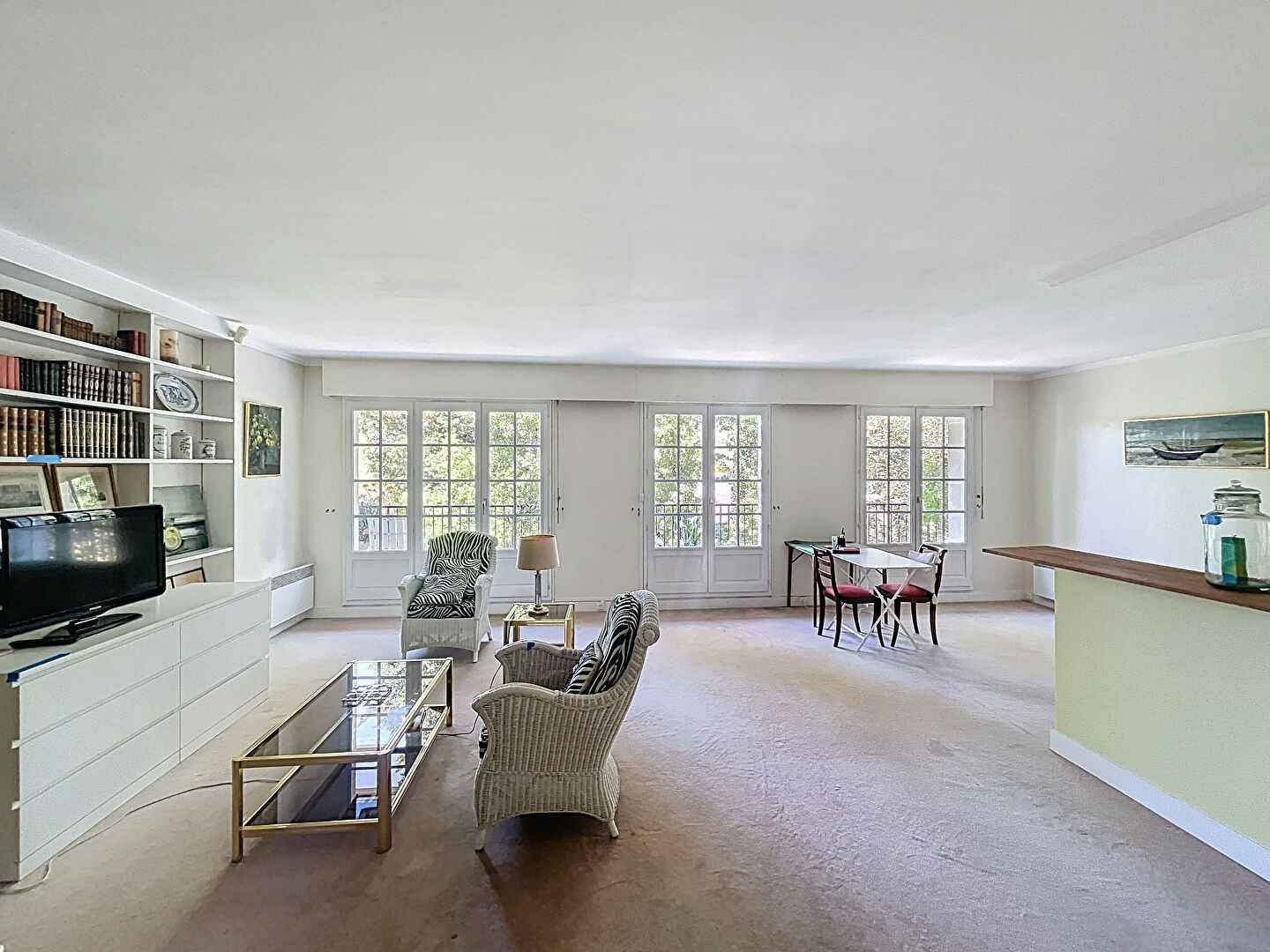 L'appartement se compose d'un double séjour spacieux de plus de 40 m², ouvrant sur un balcon, d'une cuisine indépendante, d'une salle d'eau, d'une salle de bains, ainsi que de trois chambres, dont une avec accès direct au balcon.
