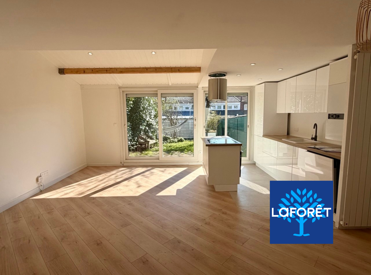 Au rez-de-chaussée, vous trouverez une entrée, un séjour-salle à manger lumineux donnant accès à un jardin calme et très agréable, une cuisine équipée ainsi qu'un garage. À l'étage, un dégagement dessert trois chambres, une salle d'eau et un WC indépendant.