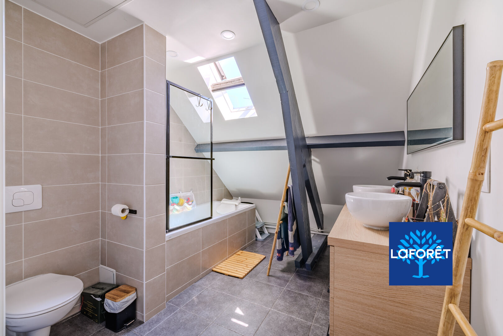 À l'étage, un dégagement dessert deux chambres supplémentaires, dont une avec dressing, un bureau idéal pour le télétravail, ainsi qu'une salle de bains avec WC.