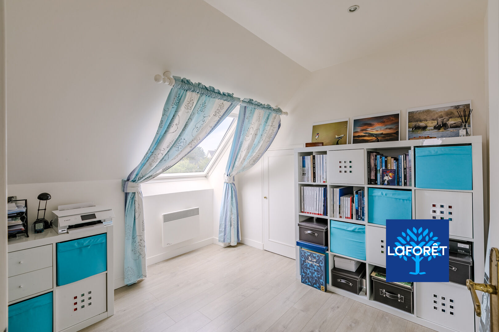 Elle dispose au rez-de-chaussée, d'un espace de vie d'environ 56 m2 avec salon, salle à manger et cuisine équipée, d'une suite parentale, un garage double avec porte automatisée, une buanderie, placards, wc et abri de jardin.