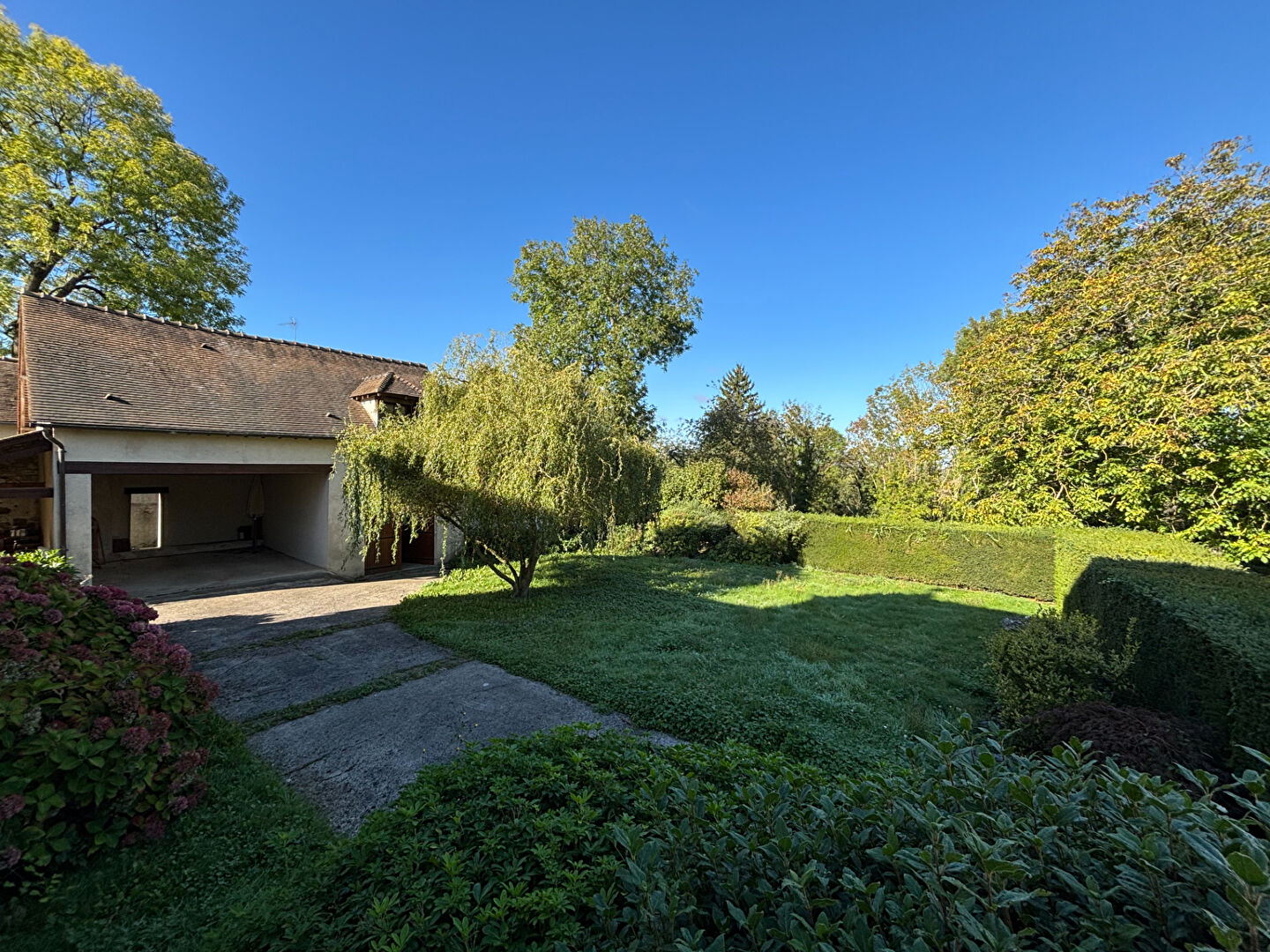 L'ensemble est bâti sur une parcelle de 802m² et comprend également un carport pour deux véhicules, un garage, un atelier et un grenier. Le tout pour un potentiel de 150m² de surface aménageable en annexe, soit possiblement deux maisons en une !