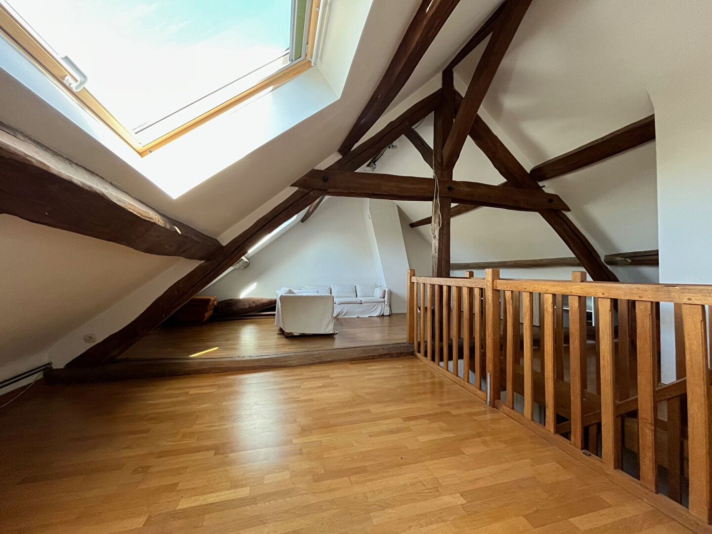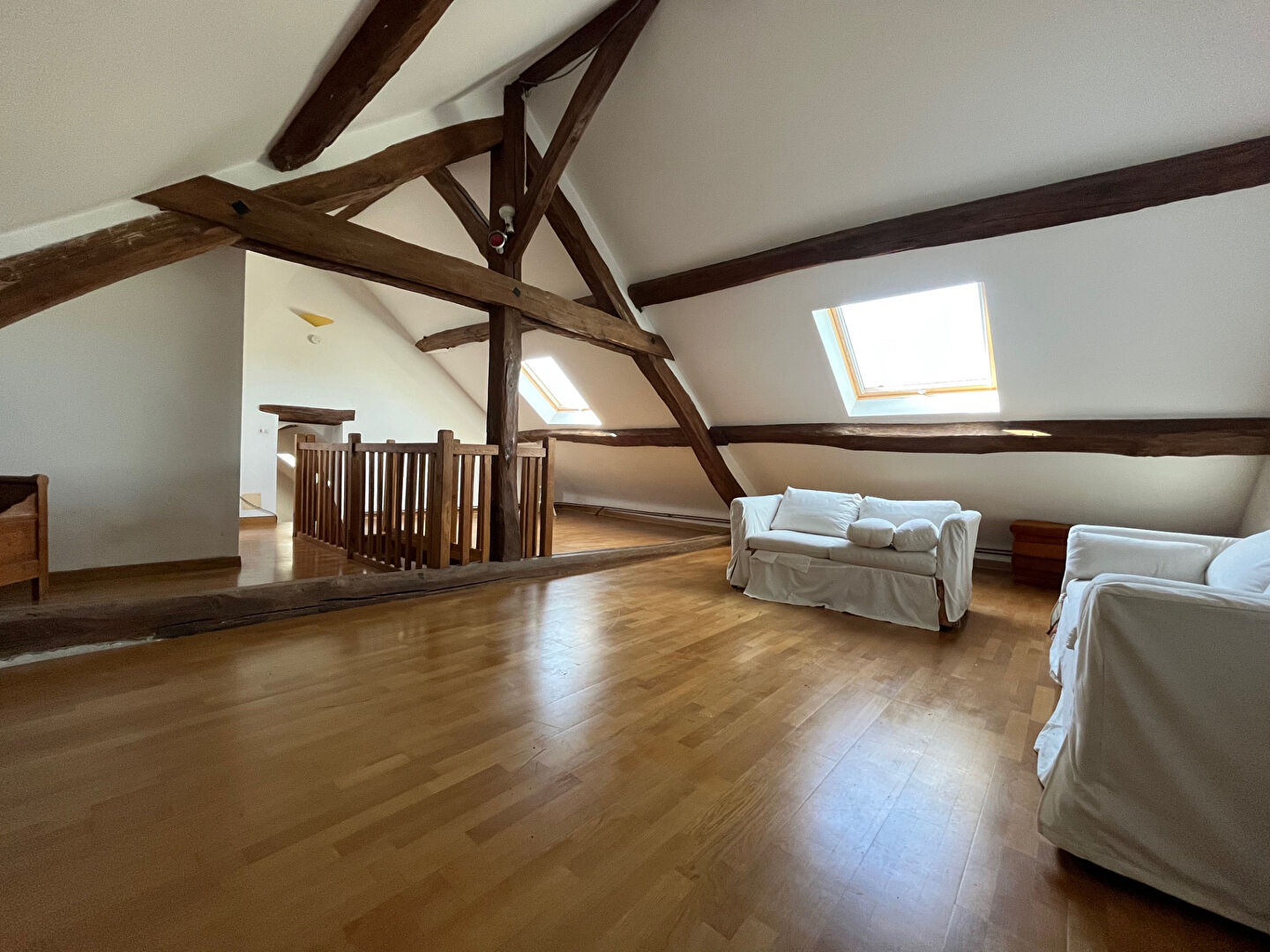 - Au deuxième étage, sous combles, une vaste pièce de vie de plus de 30m² habitables (près de 60m² au sol) pouvant faire office de salle de jeux ; un bureau ; une salle d'eau.