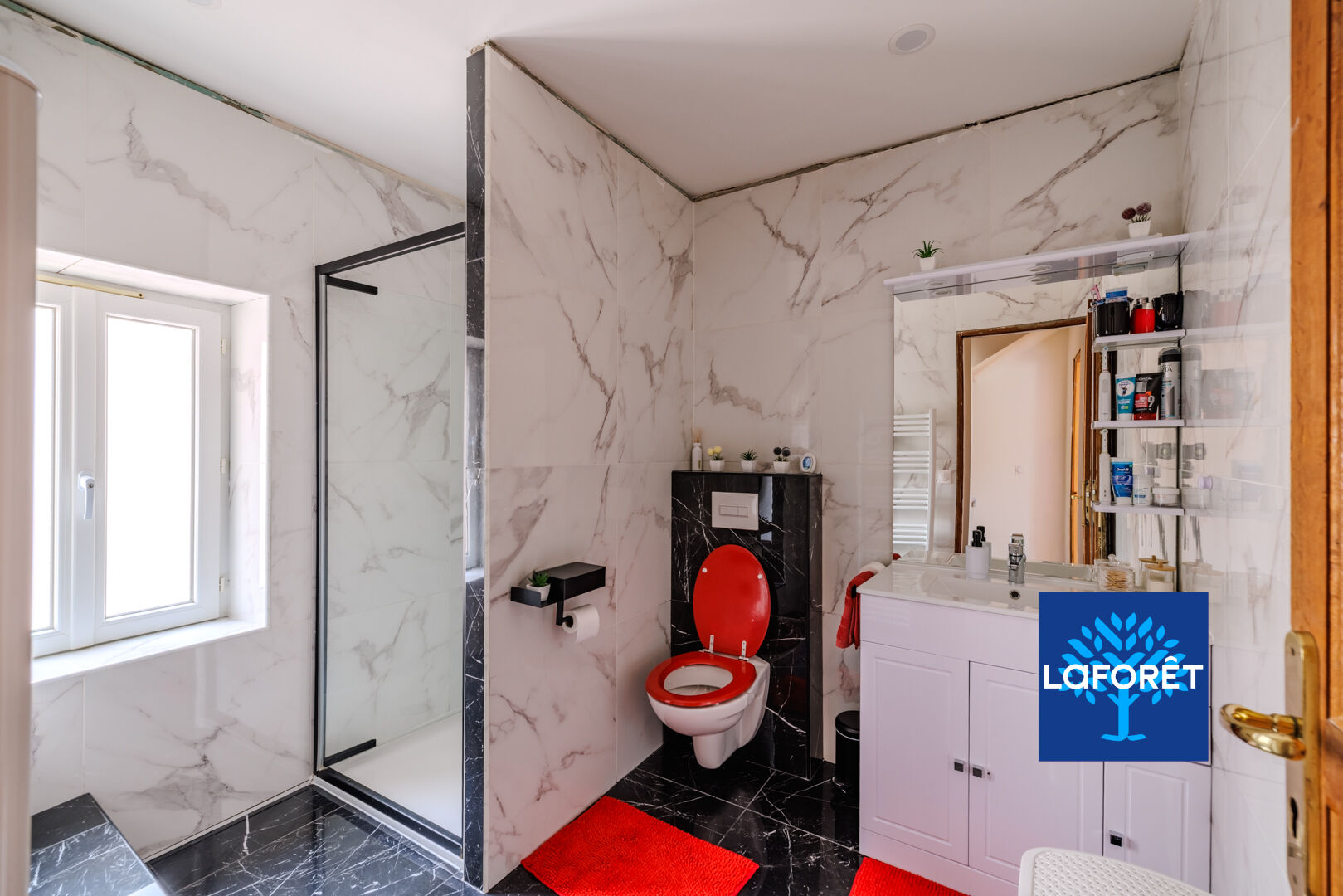 À l'étage, un dégagement dessert deux chambres et une salle d'eau avec WC. Les combles aménagés de 20 m² au sol offrent un espace supplémentaire parfait pour une salle de jeux ou un espace de rangement.