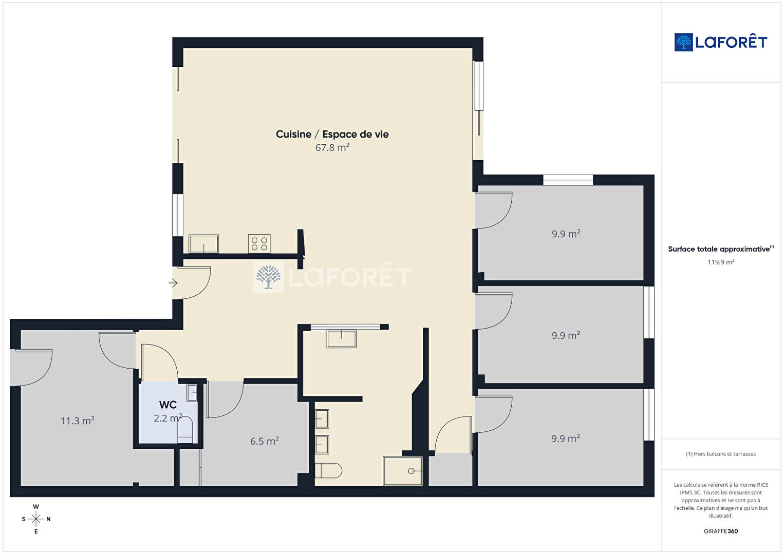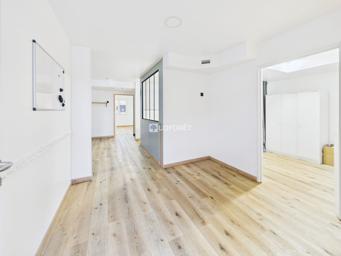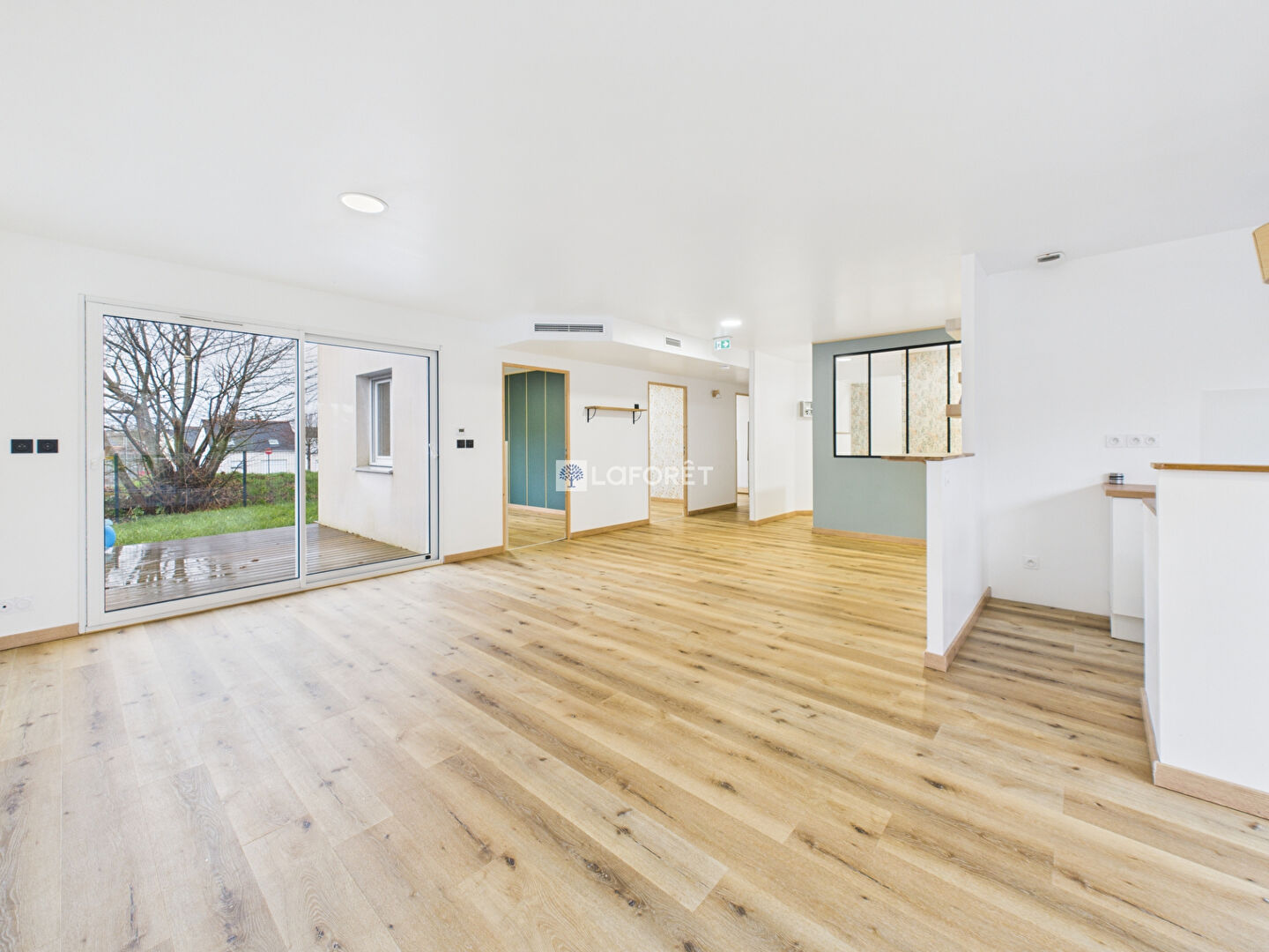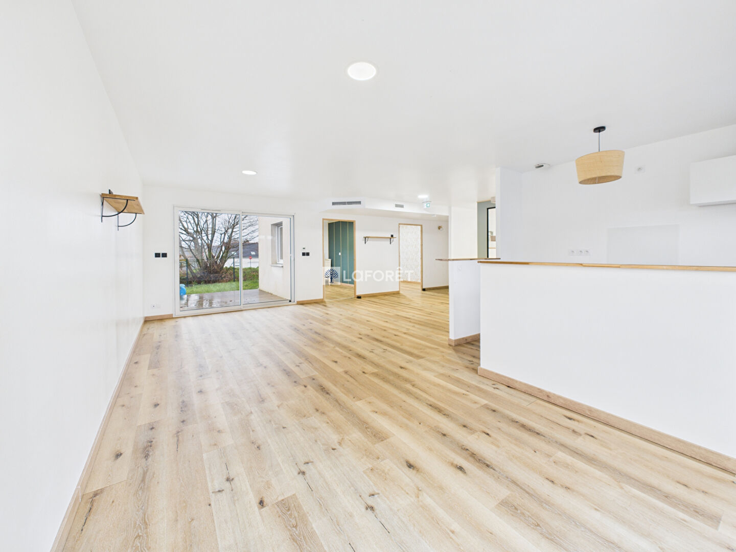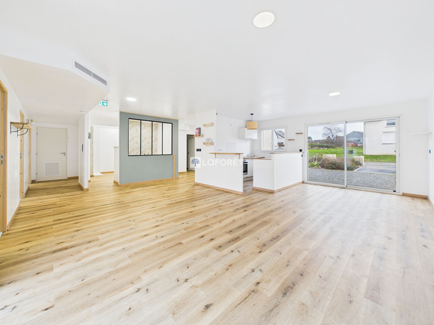 L'espace de vie principal développe près de 57 m² et s'organise autour d'un salon-séjour baigné de lumière, ouvert sur une cuisine aménagée et équipée, favorisant convivialité et confort au quotidien.